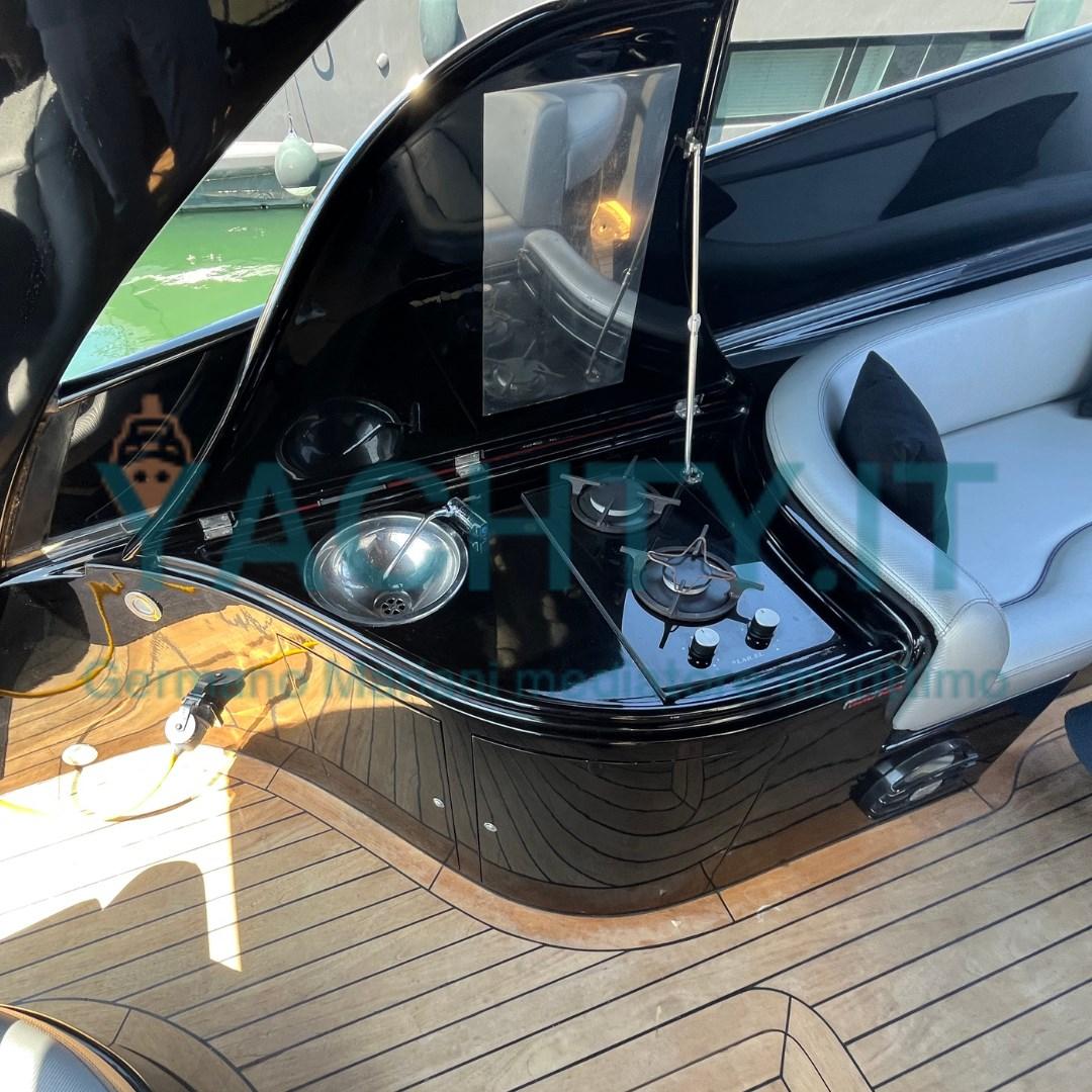 Ouverture haute performance, proposée, avec une importante remise à niveau 2023 : nouvelles hélices de surface avec des rapports optimisés (meilleures performances et consommation réduite), papillons électroniques ZF, salle des machines réaménagée, nouveau teck et rembourrage.