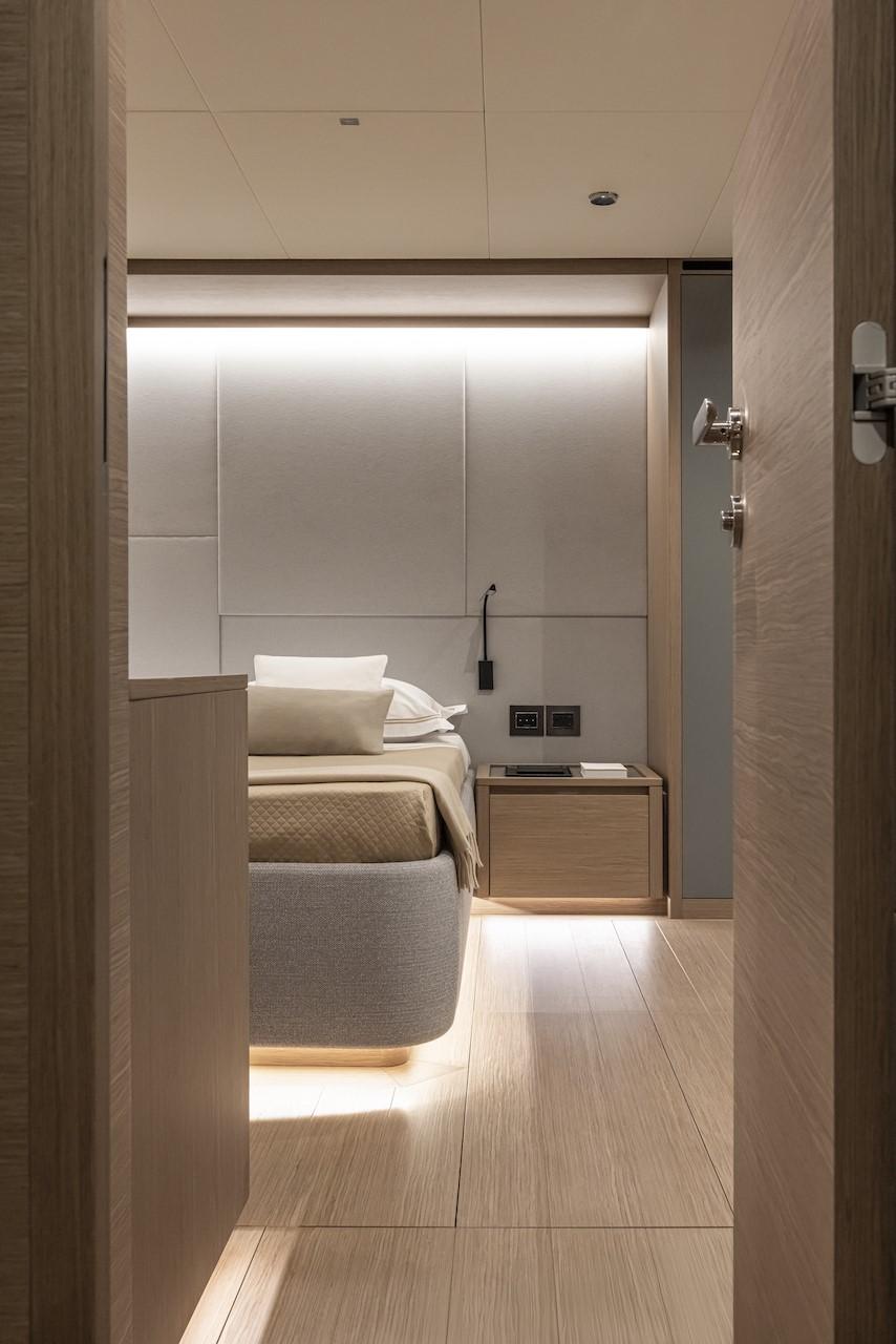 L'espace d'hébergement varie en fonction des besoins du propriétaire : l'aménagement du pont inférieur est en effet conçu pour accueillir deux, trois ou quatre cabines, pour un total de 10 couchettes
