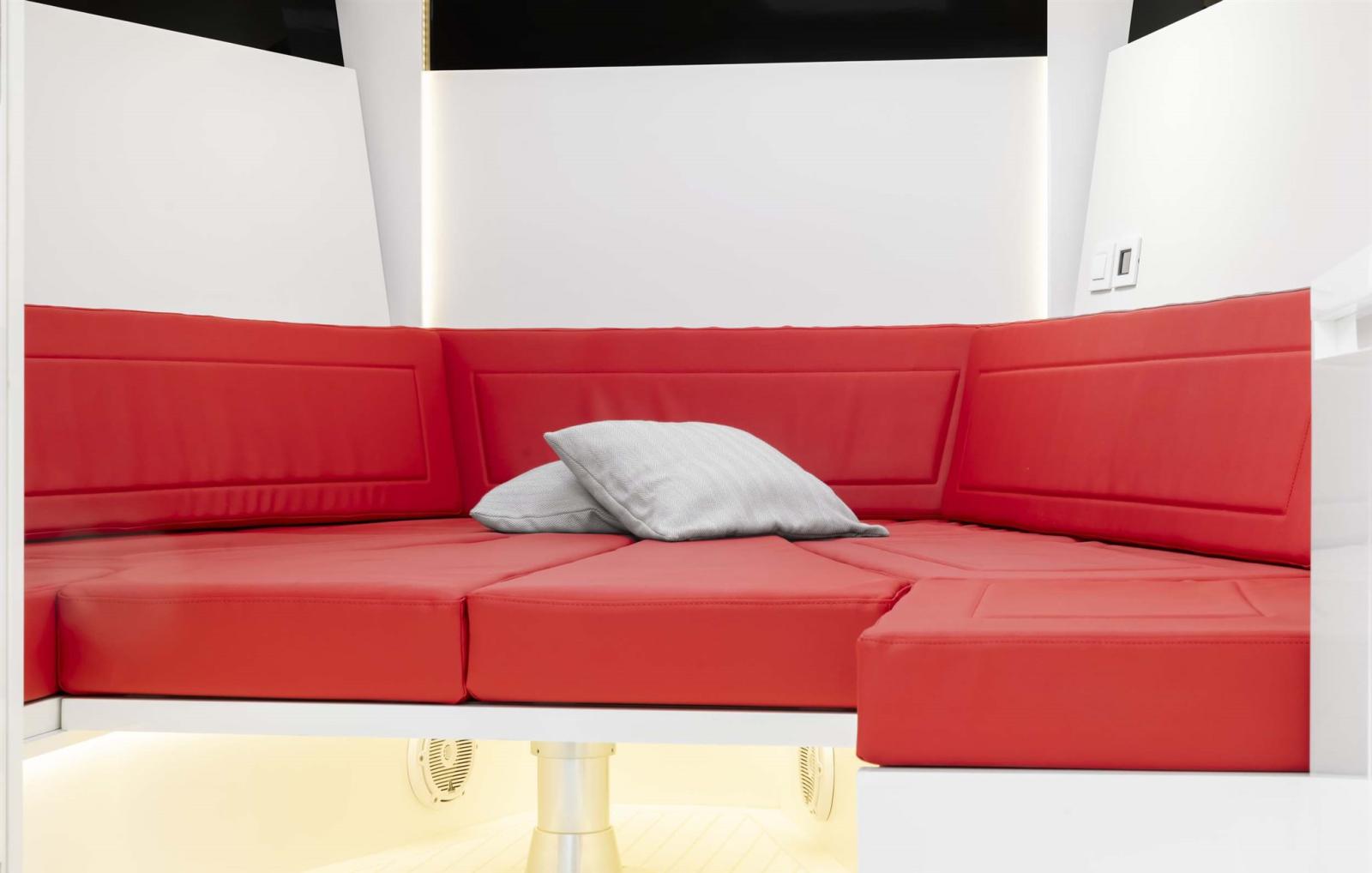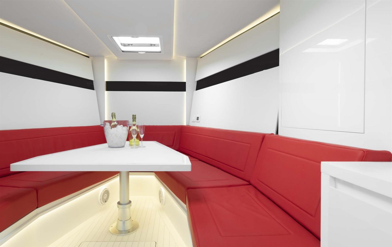 Alarme gaz, Alarme moteur, Alternateur, Ouverture du compartiment moteur électrique, Auto Dynamic Trim Interceptor, Eau sous pression, Trim hydraulique, Câble d’alimentation à quai, Couleur spéciale, Douche de cockpit, Fixation de l’ancre (Ketting), Extincteur(s) fixe(s), Indicateurs de flaps, Lavabo dans le cockpit, Éclairage de courtoisie, Spots sous-marins, Moniteur de batterie, Défenses, Passerelle, Plateforme arrière, Pompe de cale automatique, Pompe de Lavage du Pont, Pont en teck, Porte latérale, Cockpit en teck, Prise de quai, Guindeau électrique, Echelle de bain, table de cockpit.