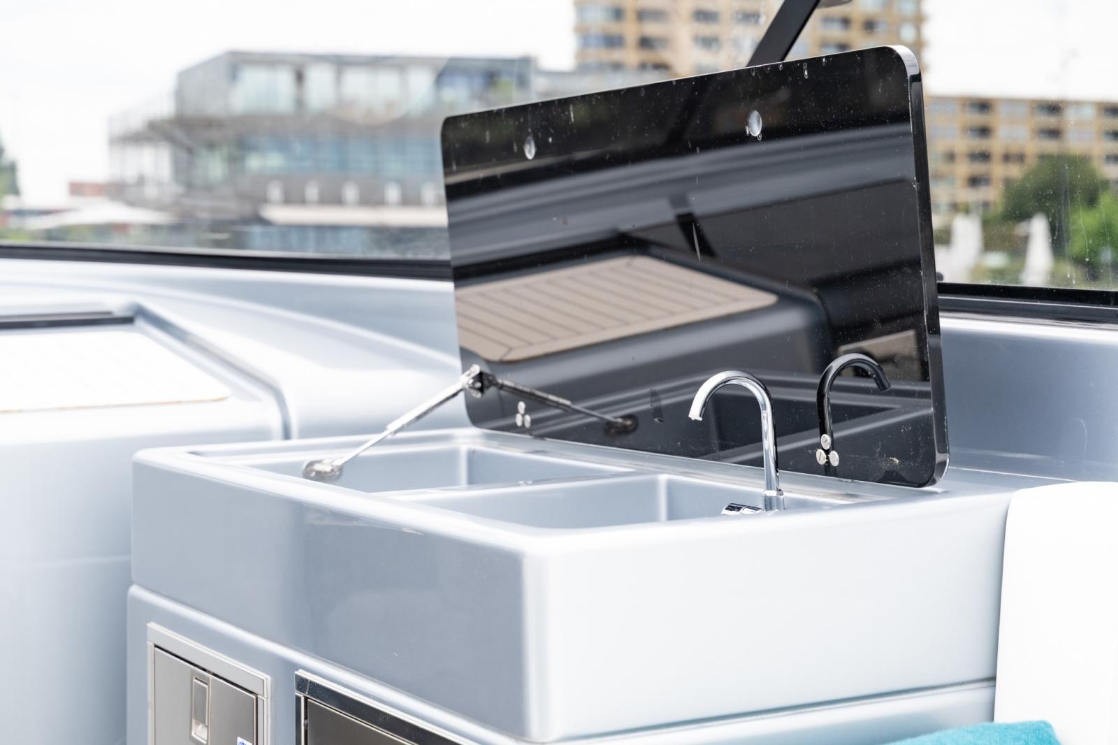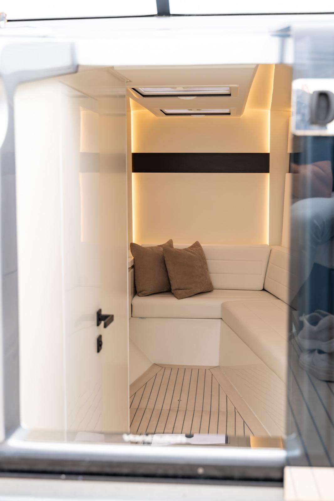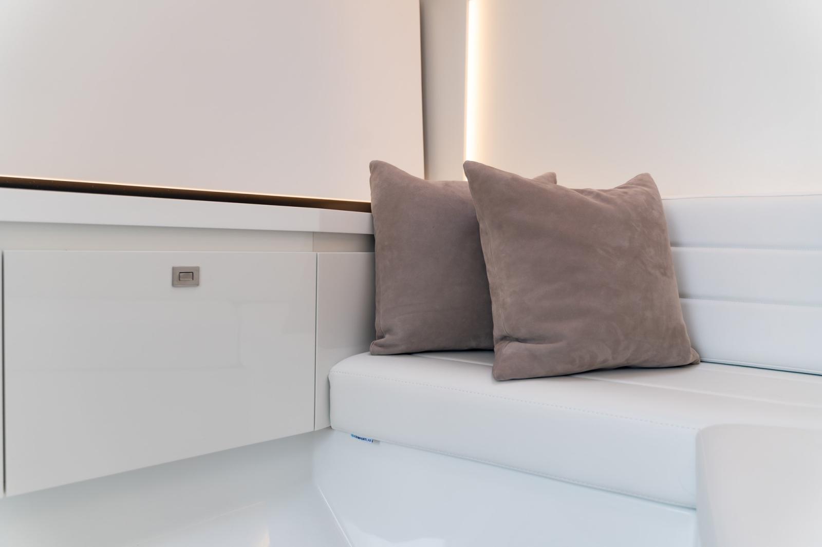 La nouvelle coque redessinée comprend une poupe ergonomique révisée et des volumes élargis pour un confort extérieur exceptionnel, avec l'objectif d'une plus grande habitabilité et d'une connexion à la mer.
