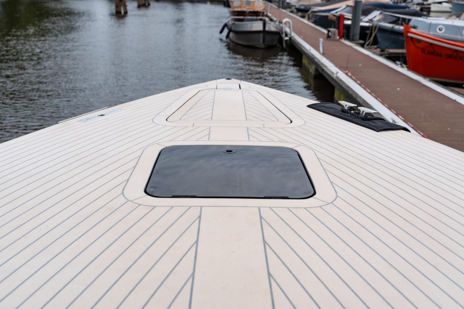 Alternateur, Ancre (Rvs), Câble d’alimentation à quai, Propulseur d'étrave (Elektrisch), Fixation de l’ancre (Ketting), Moniteur de batterie, Plateforme arrière, Prise de quai, Guindeau électrique, table de cockpit.