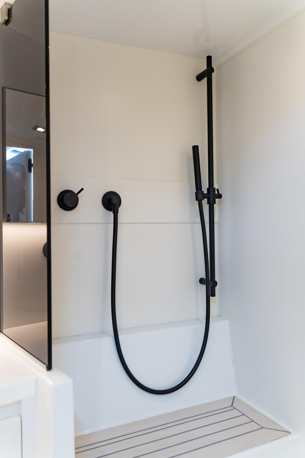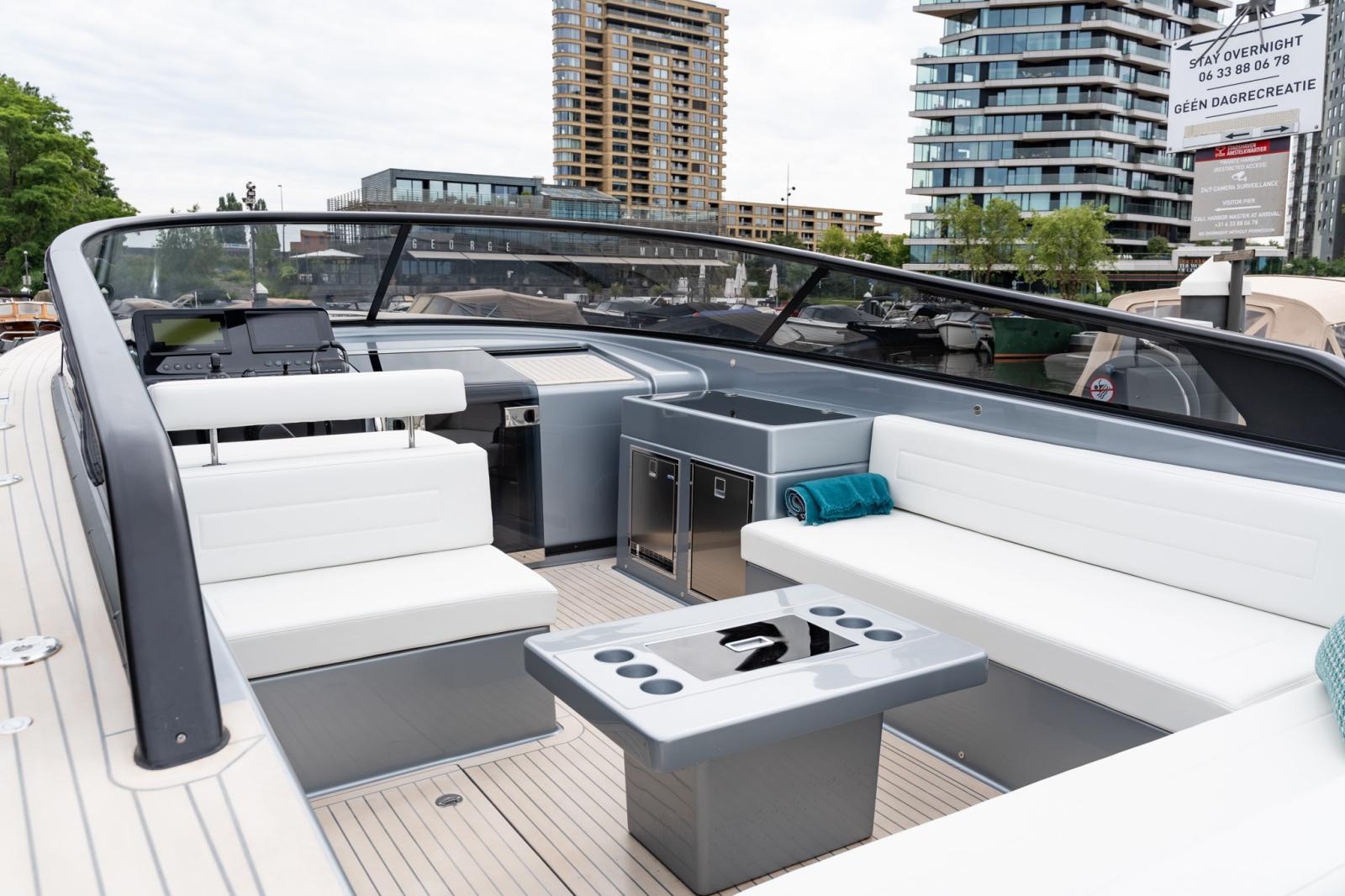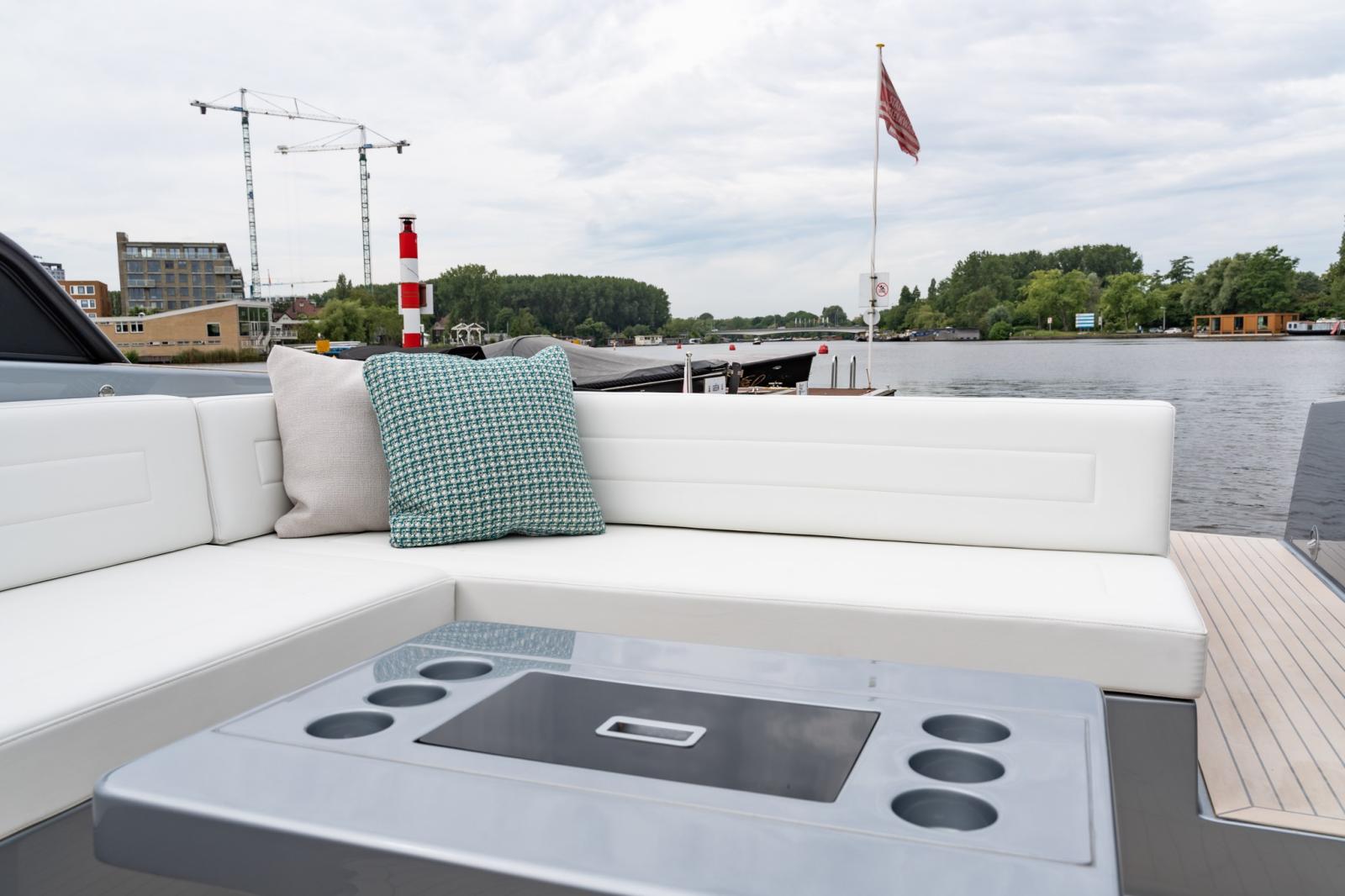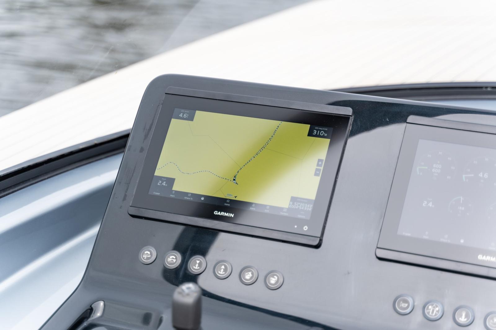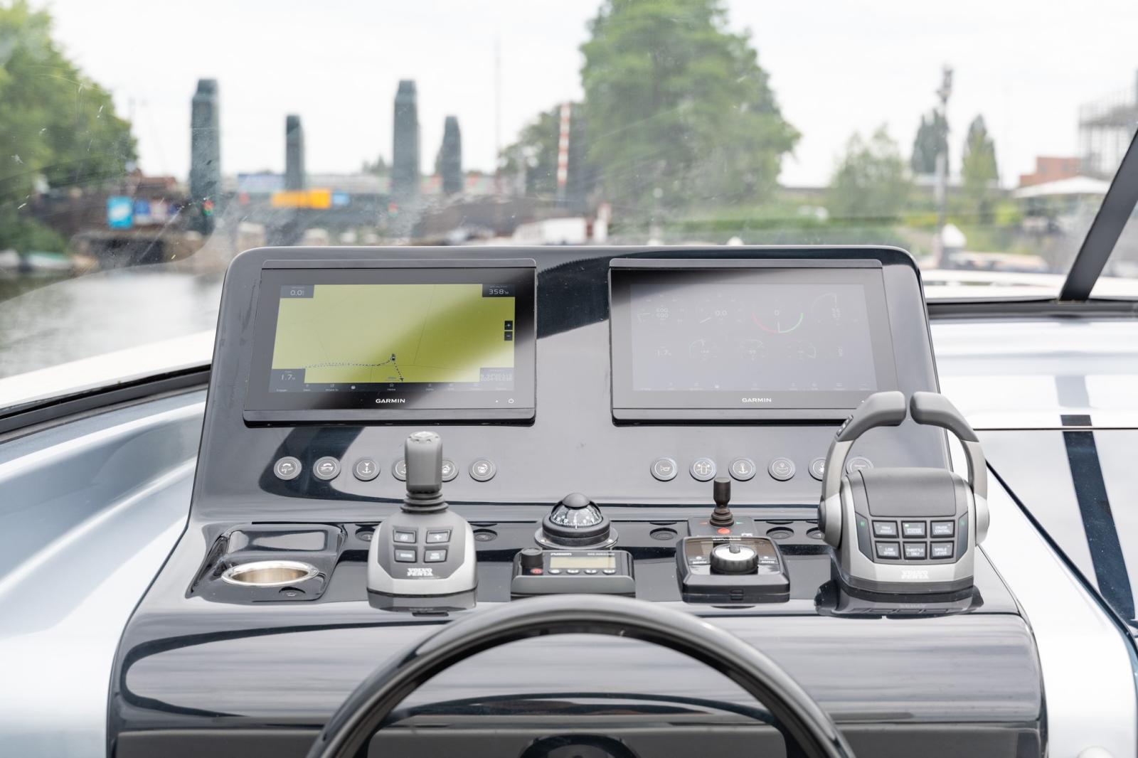 Depuis la zone de pilotage, vous pouvez gérer la musique et le système audio, l'éclairage, la recharge des appareils et bien d'autres fonctions. VanDutch passe exclusivement à l'électronique Garmin pour une interface utilisateur améliorée et intuitive. Le tableau de bord comporte 2 écrans Garmin de 12 pouces, ainsi que le joystick, ce qui vous permet de toujours garder le contrôle de la situation en toute sécurité.