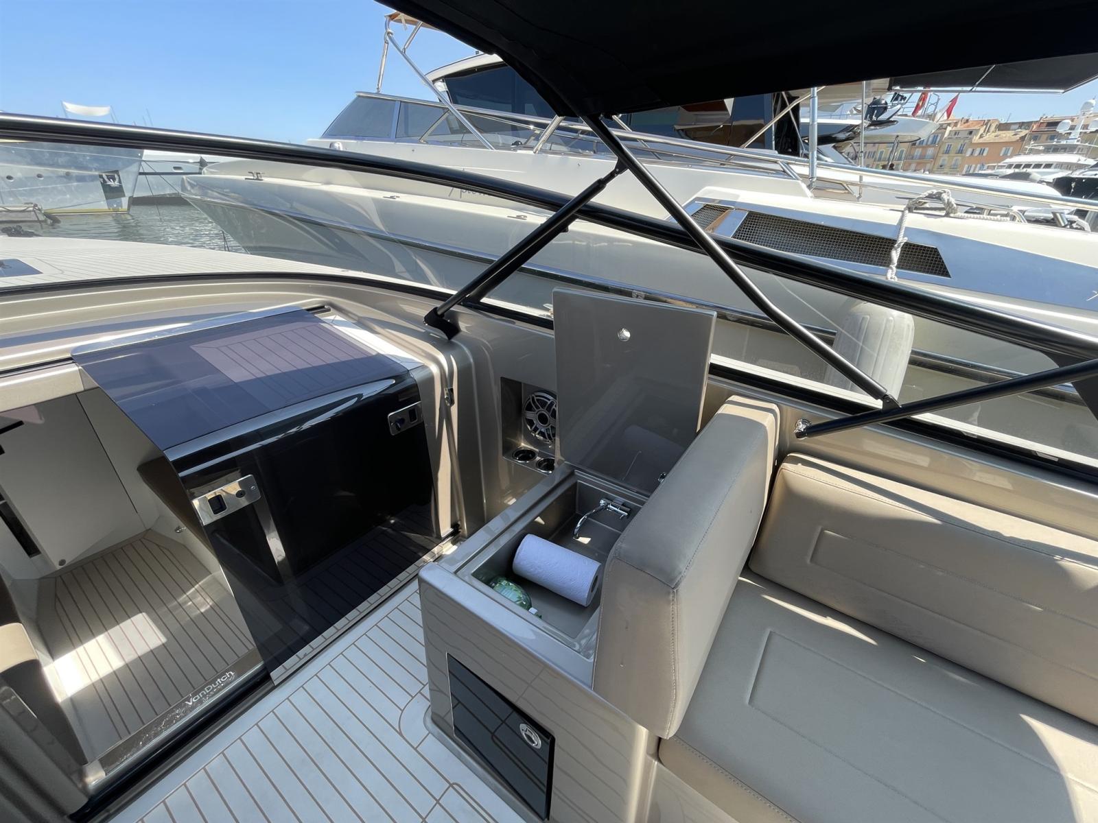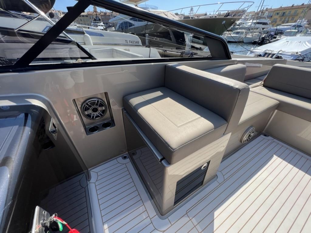 • More info radio/cd player: - Système audio VanDutch : Une unité principale Fusion installée dans la cabine, avec une télécommande Fusion installée dans le tableau de bord - Amplificateur numérique JL Audio - Quatre (4) haut-parleurs dans le cockpit (zone 1), couplés à un subwoofer de 8" - Deux (2) haut-parleurs dans la cabine (zone 2)
