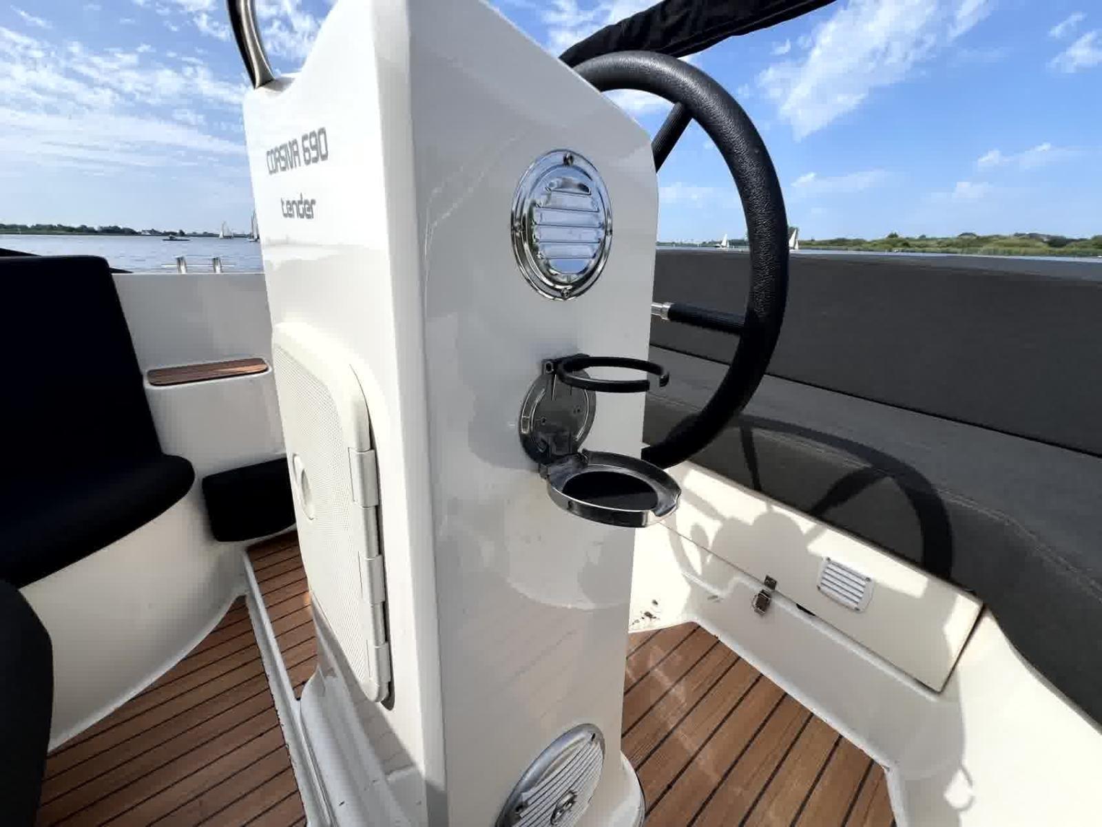 Vous cherchez l'annexe parfaite pour les journées d'été sur l'eau ? Ce Corsiva 690 est un bateau élégant et spacieux, en parfait état et prêt pour de nouvelles aventures. Propulsée par un puissant moteur hors-bord Suzuki de 90cv, bien rangé dans un bun, cette annexe combine luxe et confort avec d'excellentes caractéristiques de croisière. Grâce aux ailerons planeurs, le bateau prend de la vitesse plus rapidement et est plus stable, offrant une expérience douce et sportive sur l'eau.