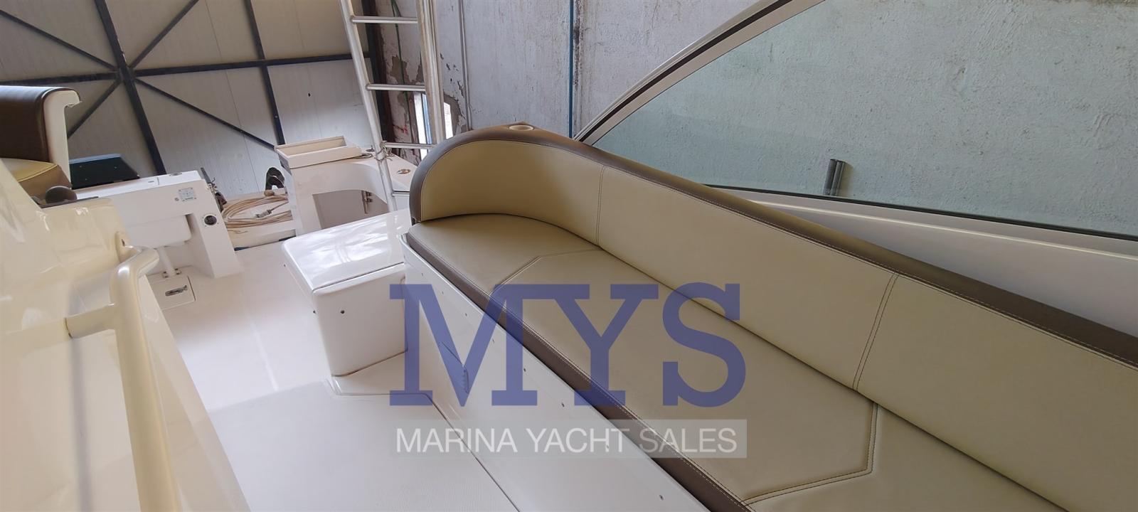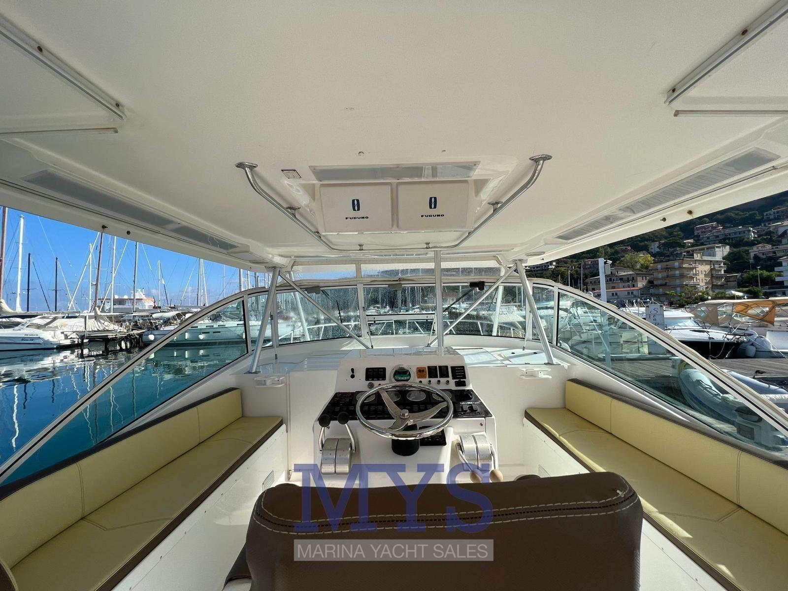 Alarme gaz, Alarme moteur, Alarme de pompe de cale, Alternateur, Ouverture du compartiment moteur électrique, Eau sous pression, Câble d’alimentation à quai, Couleur spéciale, Douche de cockpit, Double barre à roue, Phares fixes arrière, Flaps hydrauliques, Extincteur(s) fixe(s), Indicateurs de flaps, Lavage de chaine, Lavabo dans le cockpit, Éclairage de courtoisie, Passerelle (idraulica besenzoni), Plateforme arrière, Pompe de Lavage du Pont, Porte latérale, Prise de quai, Répétiteur électronique, Guindeau électrique, Echelle de bain, Système de filtration des eaux usées, Table pliante de salon, Corne, T-Top.