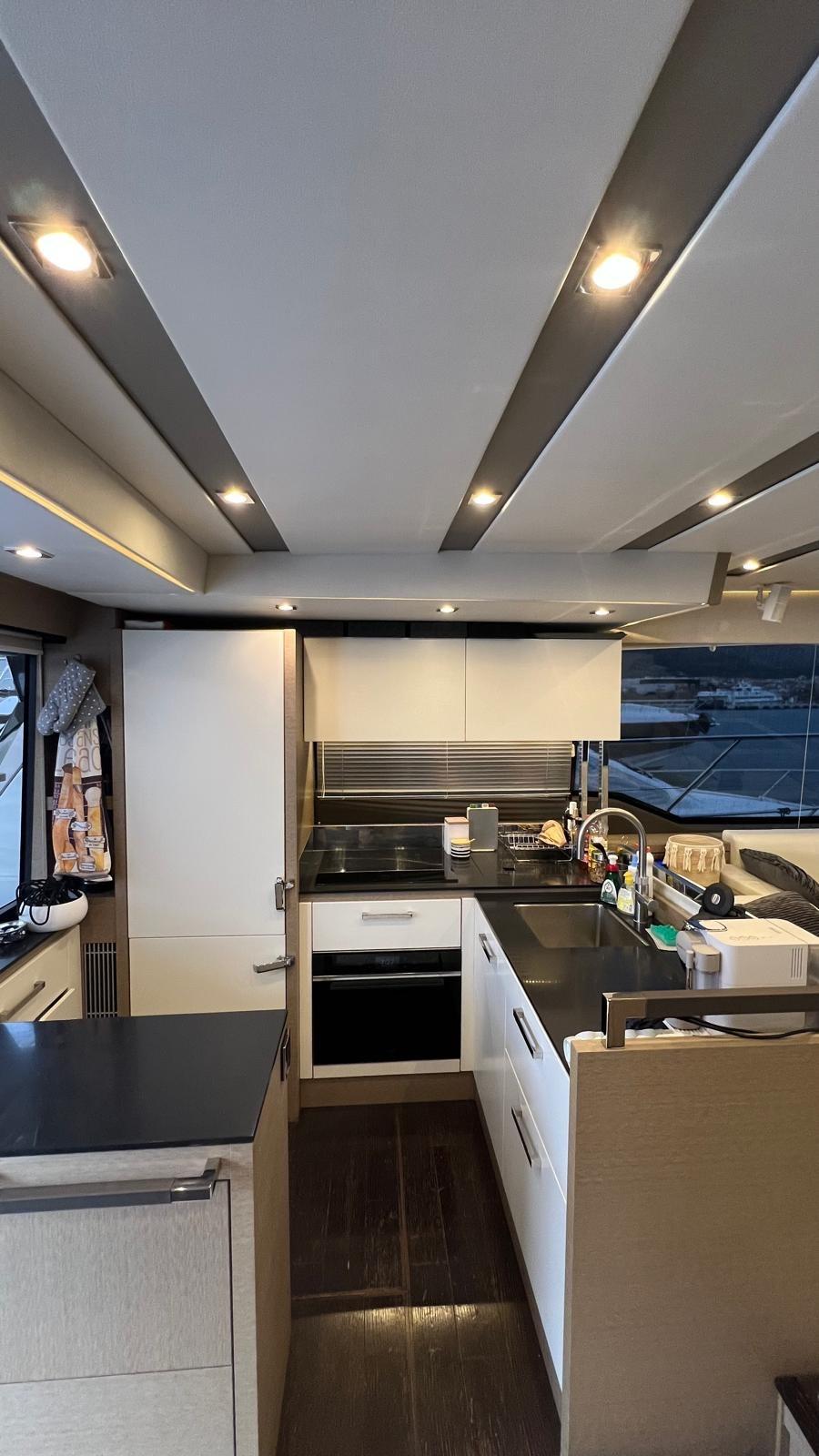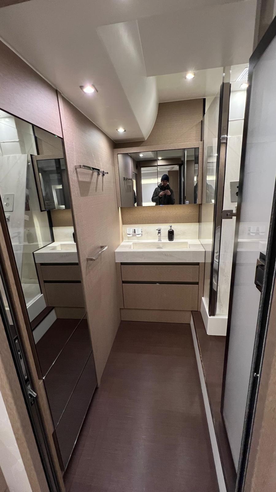 Ce navire élégant paraît rapide, mais l’accent est mis sur le confort de croisière. Deux Volvo Penta IPS 950 lui confèrent une vitesse maximale respectable de près de 30 nœuds avec une excellente réponse des gaz et une sensation sportive, bien que le bateau soit silencieux à l’intérieur comme à l’extérieur.