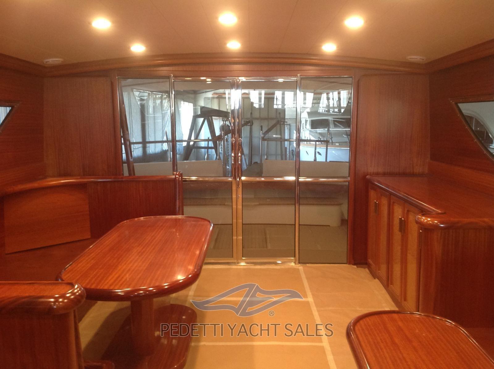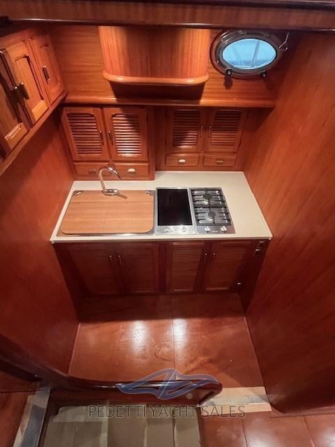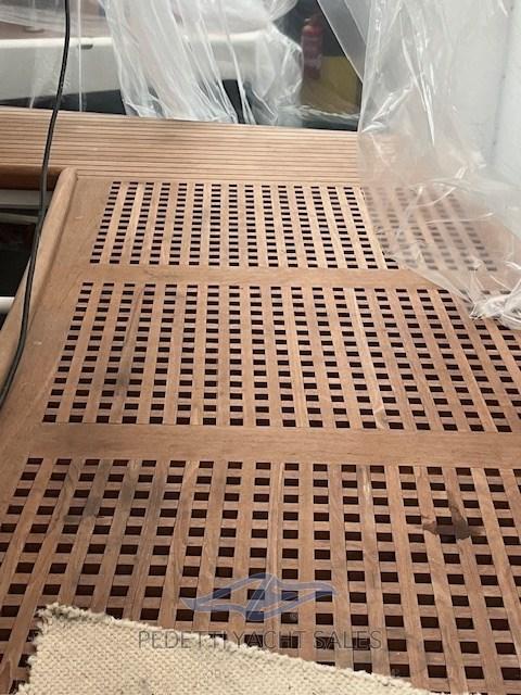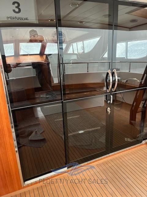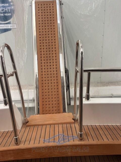 Alarme gaz, Alarme moteur, Alarme de pompe de cale, Alternateur, Eau sous pression, Passavant en teck, Câble d’alimentation à quai, Filères, Douche de cockpit, Double barre à roue, Hélice de rechange, Phare de poursuite, Flaps électriques, Éclairage de courtoisie, Défenses, Passerelle, Plateforme arrière, Pompe de cale automatique, Pompe de cale manuelle, Pont en teck, Porte latérale, Cockpit en teck, Prise de quai, Rollbar, Guindeau électrique, Echelle de bain, table de cockpit, Corne.