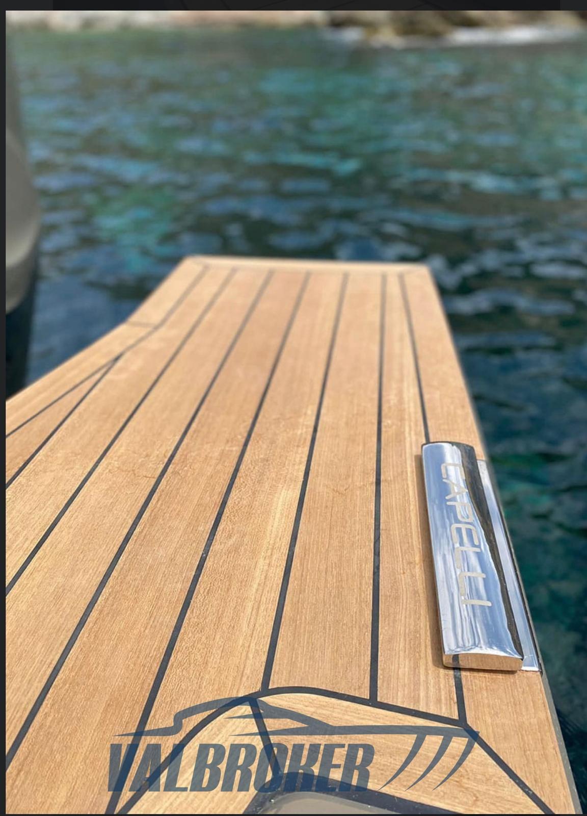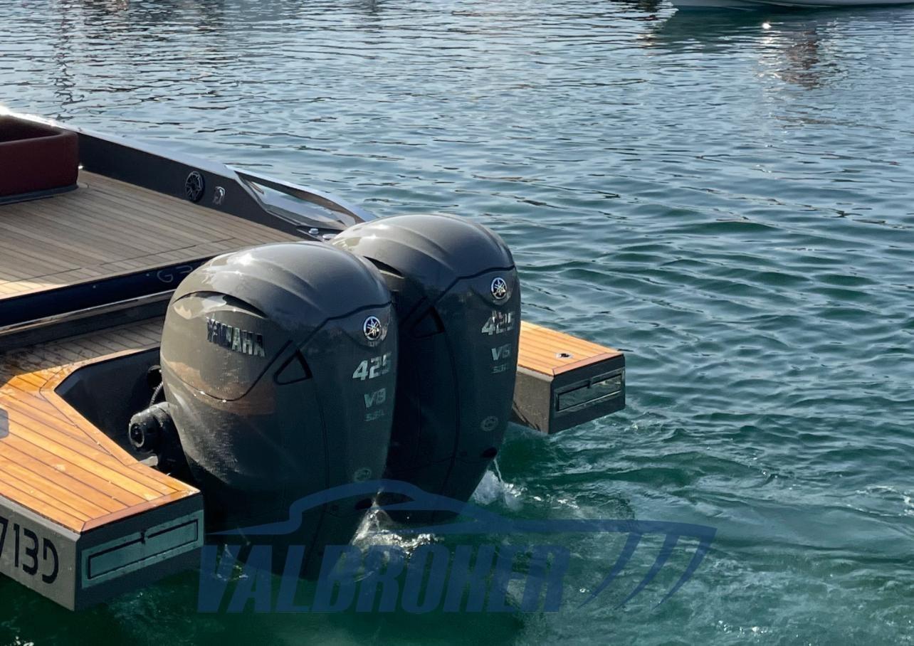 Alarme moteur, Ouverture du compartiment moteur électrique, Auto Dynamic Trim Interceptor, Eau sous pression, 3 Batteries, Taquets pliants, Douche de cockpit, Phare de poursuite, Lavabo dans le cockpit, Éclairage de courtoisie, Spots sous-marins, Passerelle, Plateforme arrière (teak), Cockpit en teck, Prise de quai, Guindeau électrique, Echelle de bain, table de cockpit (abbattibile), Corne.
