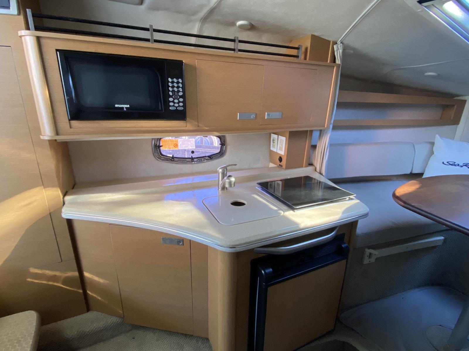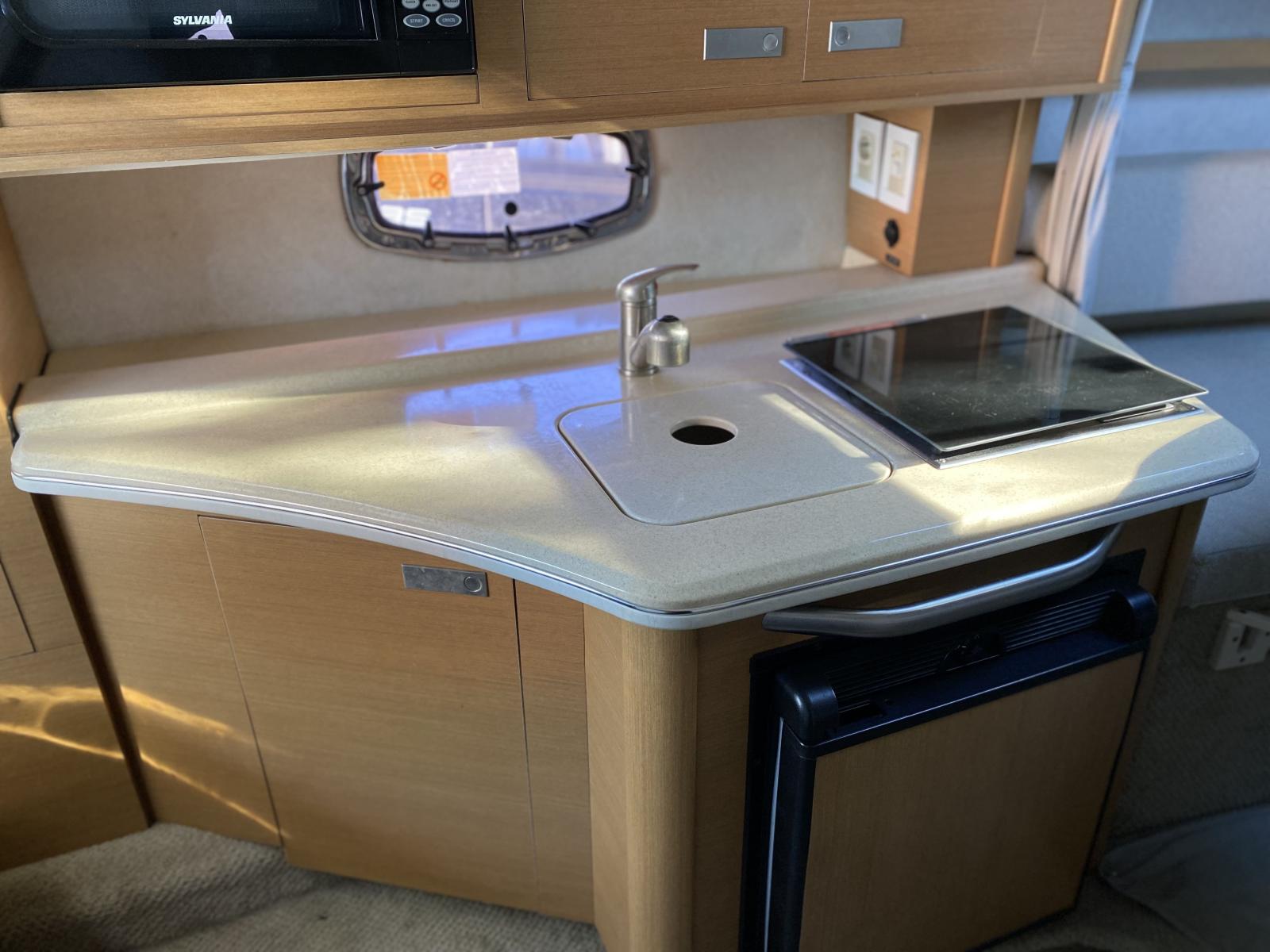 Cuisine intérieure (réfrigérateur, évier, réchaud, micro-onde)