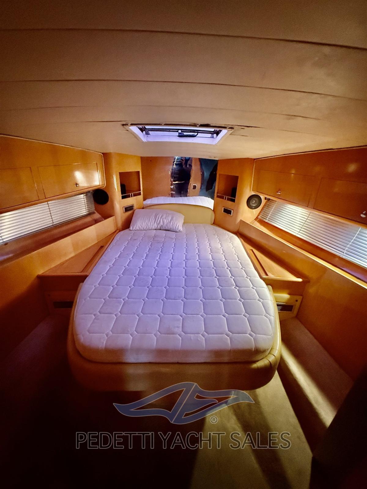 Le Colombo Cambridge 44 est un yacht à moteur de 12,70 mètres, équipé de deux moteurs Cummins 6 CTA 8,3 M3 chacun, chacun de 450 ch, garantissant une vitesse maximale de 33 nœuds et une vitesse de croisière de 24 nœuds. Ce yacht, construit avec une coque, une superstructure et un pont en fibre de verre, est conçu pour accueillir jusqu’à 12 personnes avec 4 lits et une salle de bain. L’aménagement intérieur est fonctionnel et confortable, avec une cabine principale avant avec un lit double et une seconde cabine avec couchettes superposées, ainsi que des équipements tels que la climatisation, un générateur, un autoclave et une cuisine bien équipée.