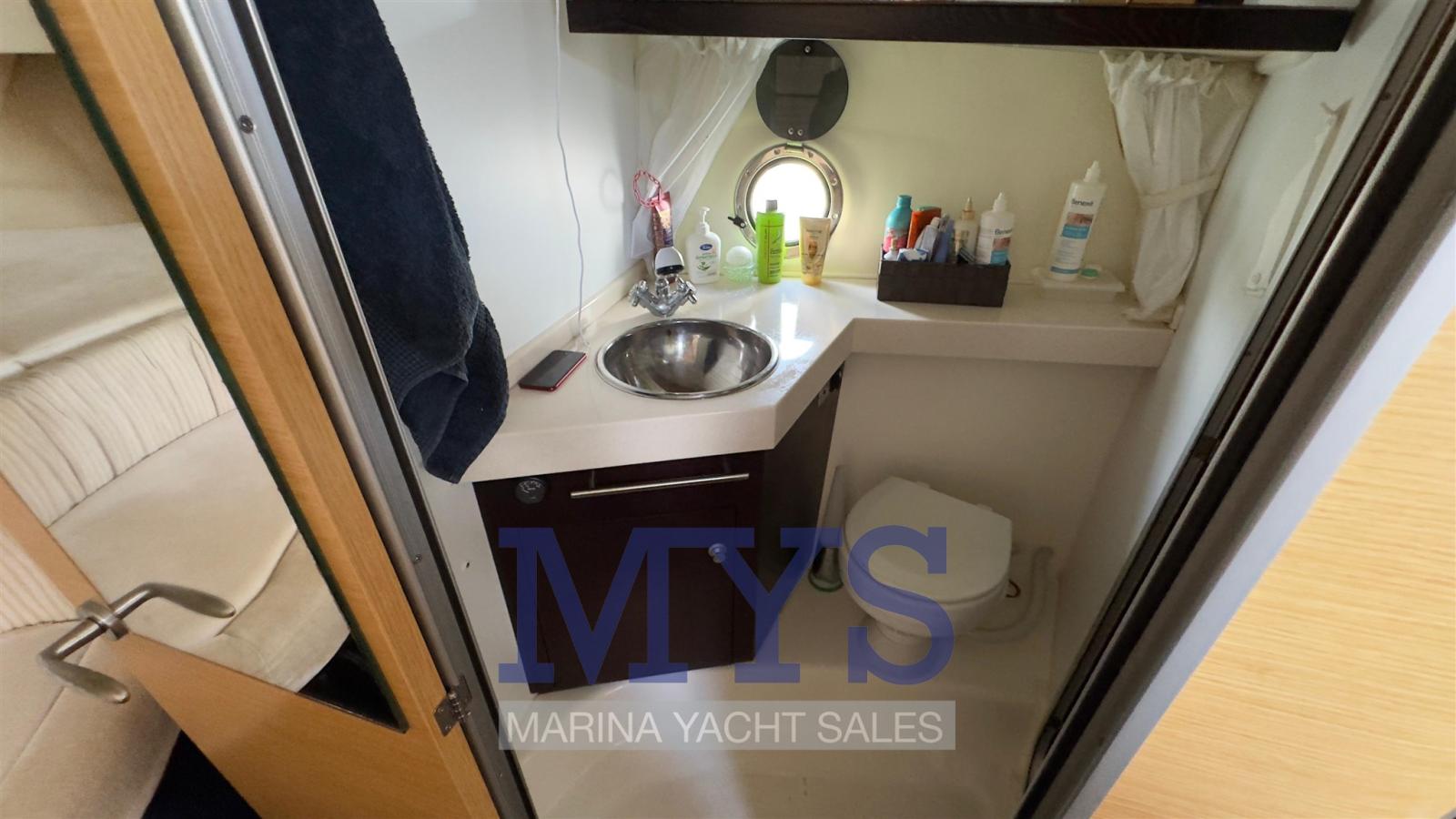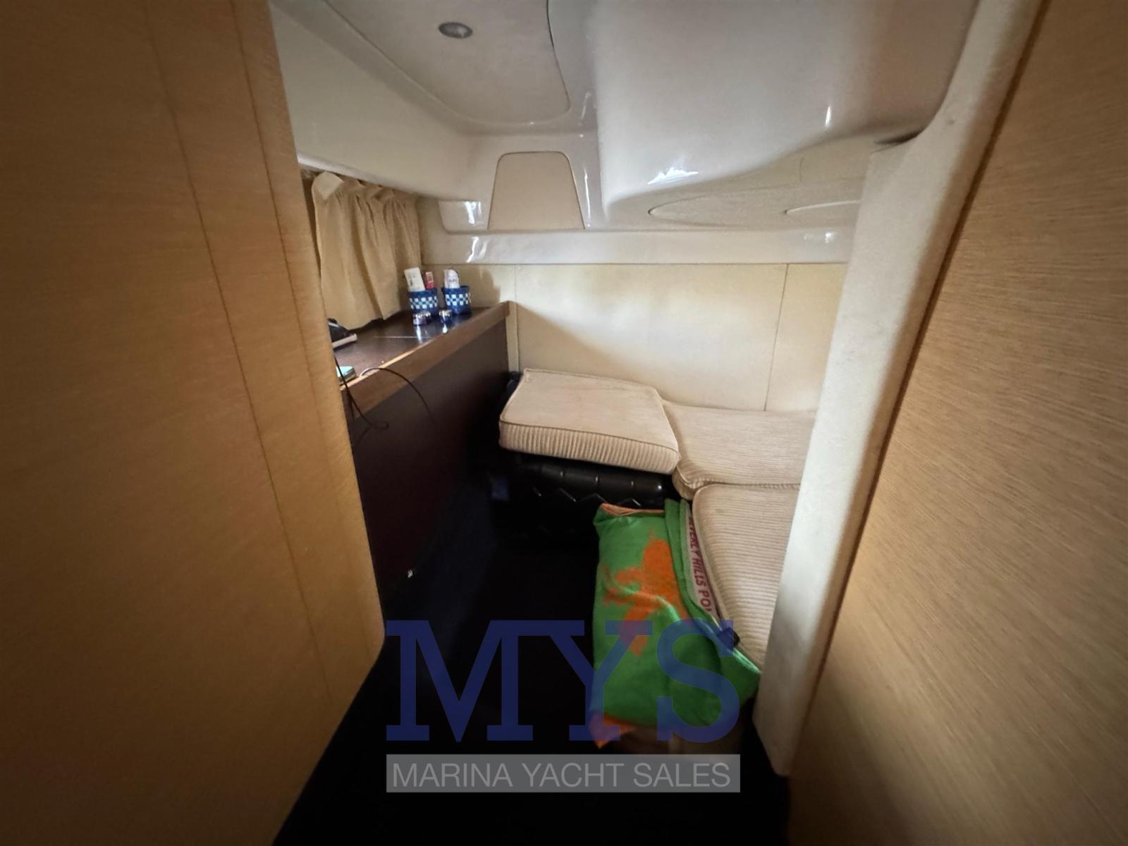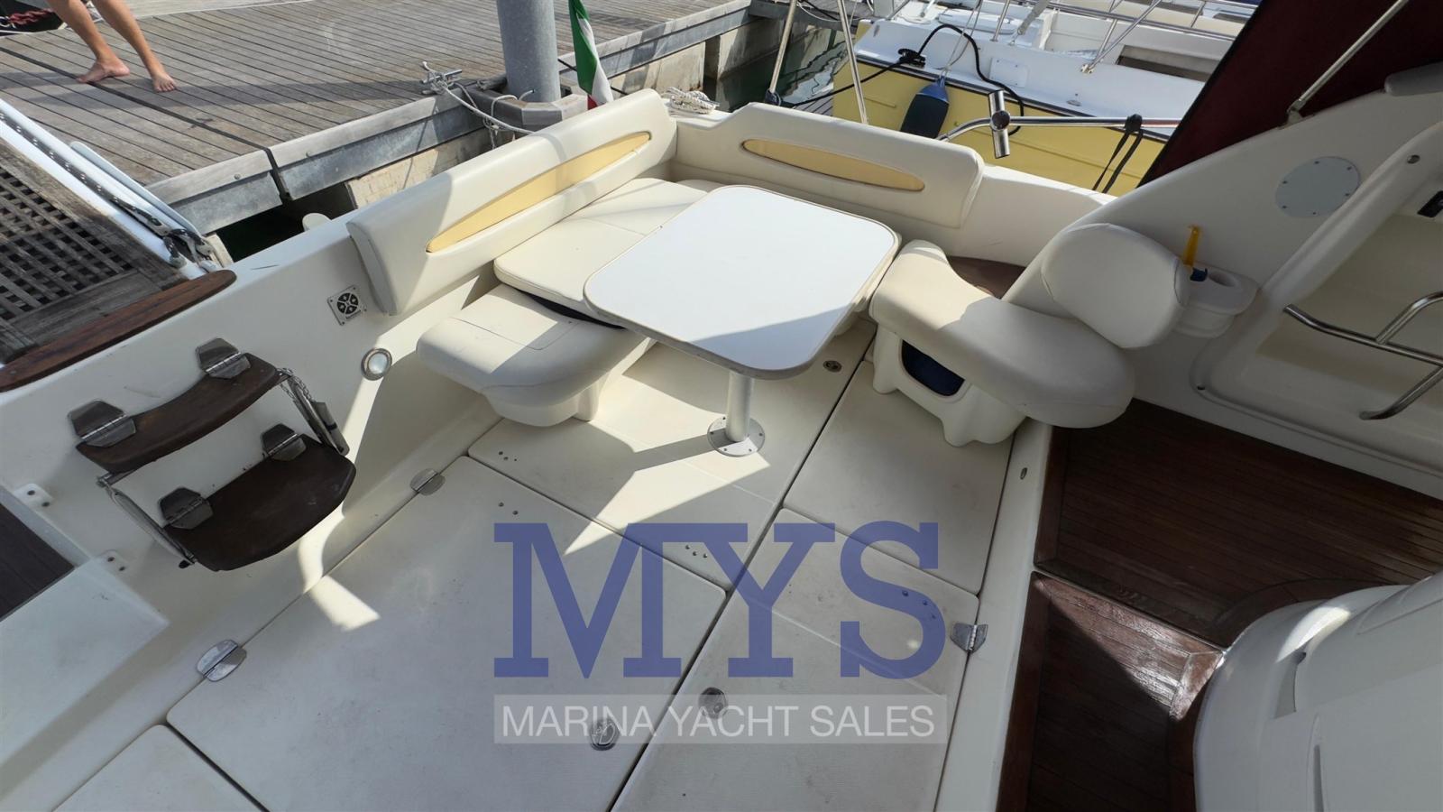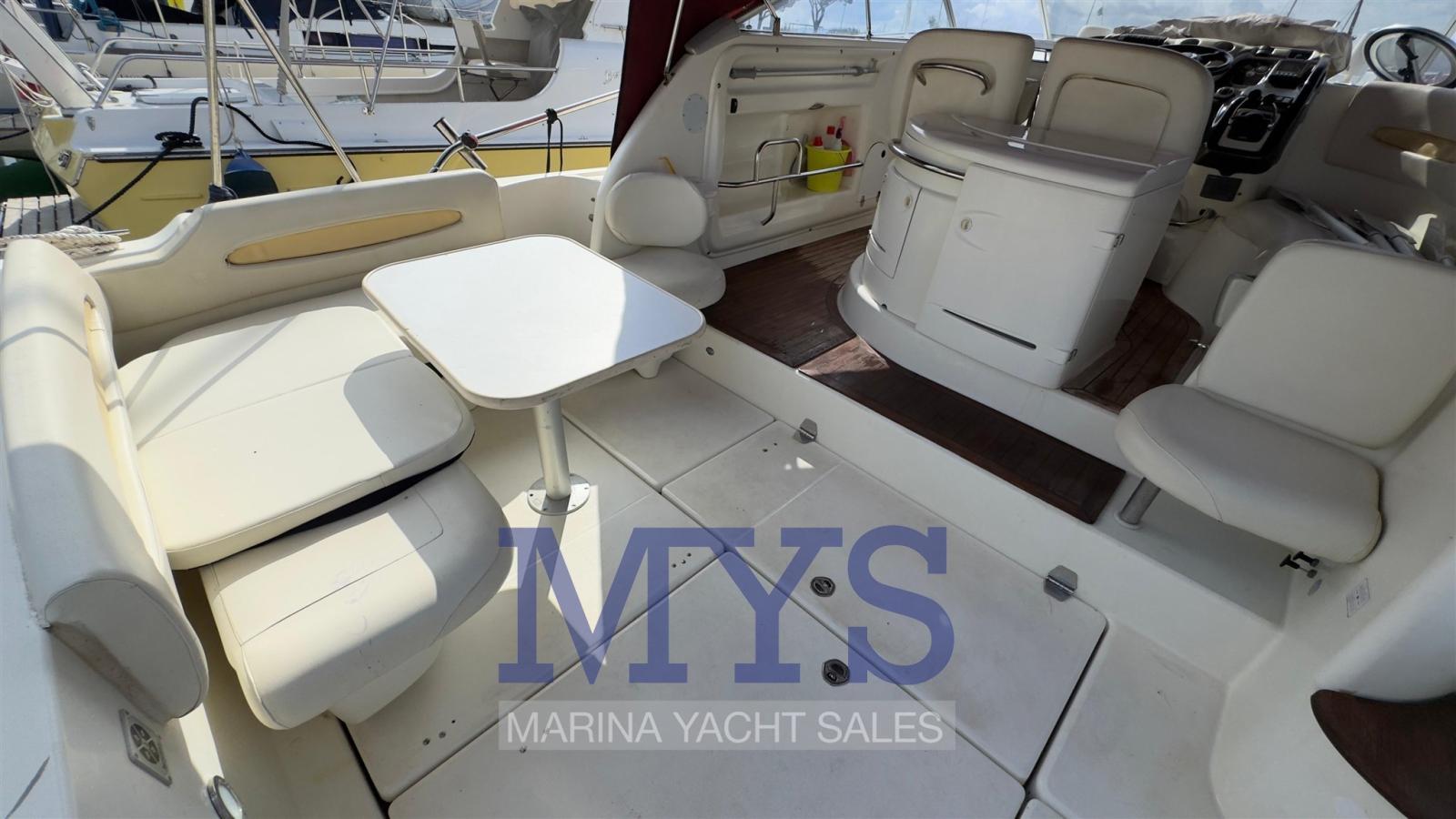 Alarme moteur, Eau sous pression, Douche de cockpit, Plateforme arrière, Pompe de cale automatique, Porte latérale, Prise de quai, Guindeau électrique, Echelle de bain, table de cockpit, Corne.