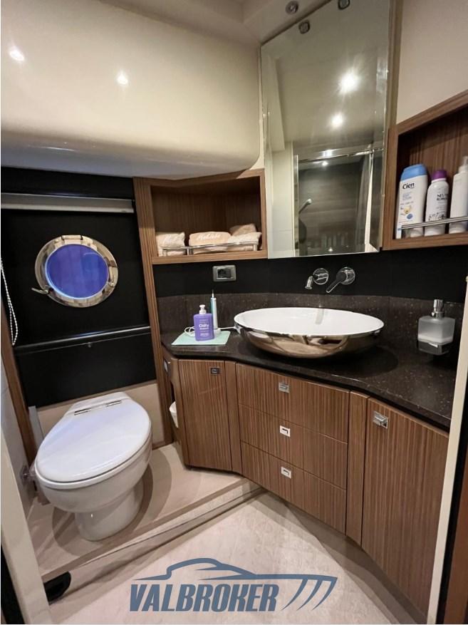 Eau sous pression, Passavant en teck, Câble d’alimentation à quai, Couleur spéciale (rosso), Douche de cockpit, Double barre à roue, Phares fixes arrière, Flaps électriques, Extincteur(s) fixe(s), Indicateurs de flaps, Lavage de chaine, Éclairage de courtoisie, Spots sous-marins, Moniteur de batterie, Passerelle, Plateforme arrière, Porte latérale, Porte latérale, Cockpit en teck, Prise de quai, Connexion eau sous pression à quai, Guindeau électrique, Echelle de bain, Stabilisateurs (Gyro 5 Seakeeper), table de cockpit, Corne, T-Top, Winch électrique arrière.