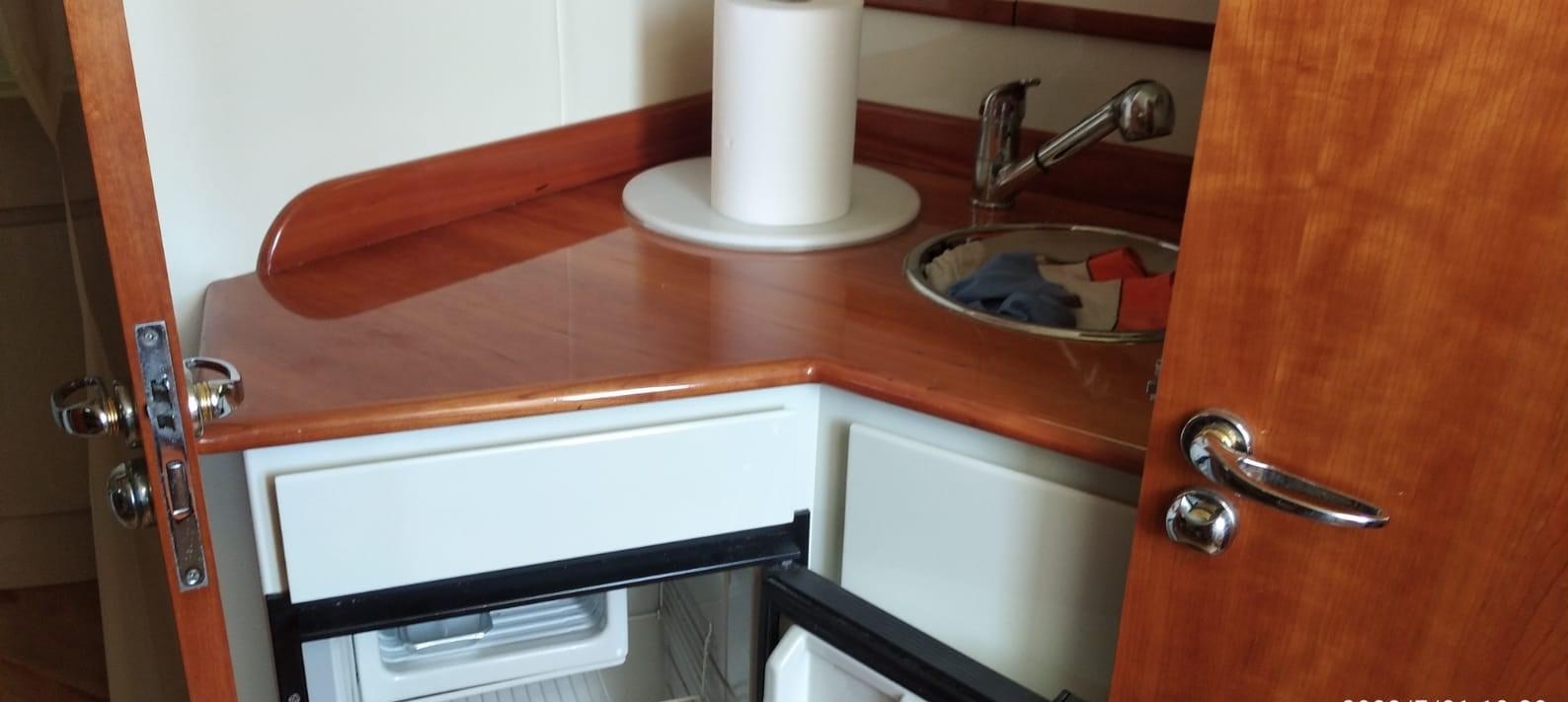 Alarme moteur, Ouverture du compartiment moteur électrique, Eau sous pression, 3 Batteries, Douche de cockpit, Flaps hydrauliques, Indicateurs de flaps, Lavabo dans le cockpit, Éclairage de courtoisie, Passerelle, Pompe de cale automatique, Porte latérale, Cockpit en teck (in perfette condizioni), Rollbar, Guindeau électrique, Echelle de bain, table de cockpit (elettrico), Corne.