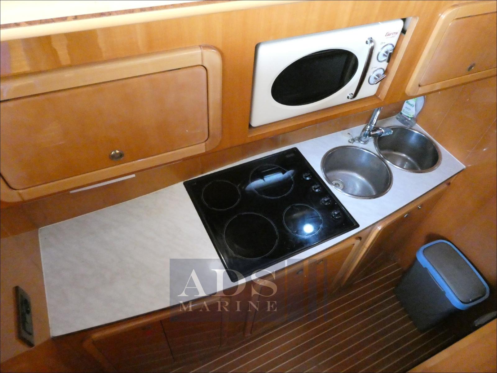 Eau sous pression, Double barre à roue, Flaps hydrauliques (N°2), Passerelle, Plateforme arrière, Pompe de cale automatique, Guindeau électrique, Echelle de bain.