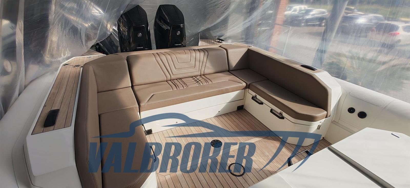 Compartiment ouvrant à l’avant avec cabine équipage (matelas et prises USB). Couleur BLANC. 2x400HP Mercury V10.