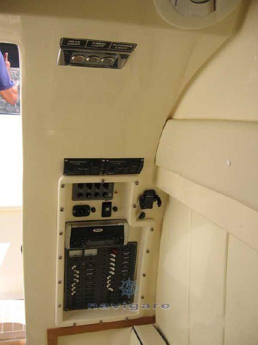 Alarme moteur, Alarme de pompe de cale, Eau sous pression, Passavant en teck, Douche de cockpit, Éclairage de courtoisie, Pompe de cale automatique, Cockpit en teck, Prise de quai, Guindeau électrique, Echelle de bain, table de cockpit, Corne.