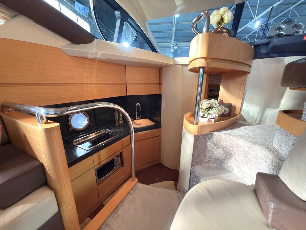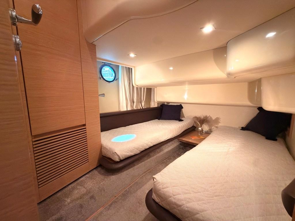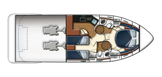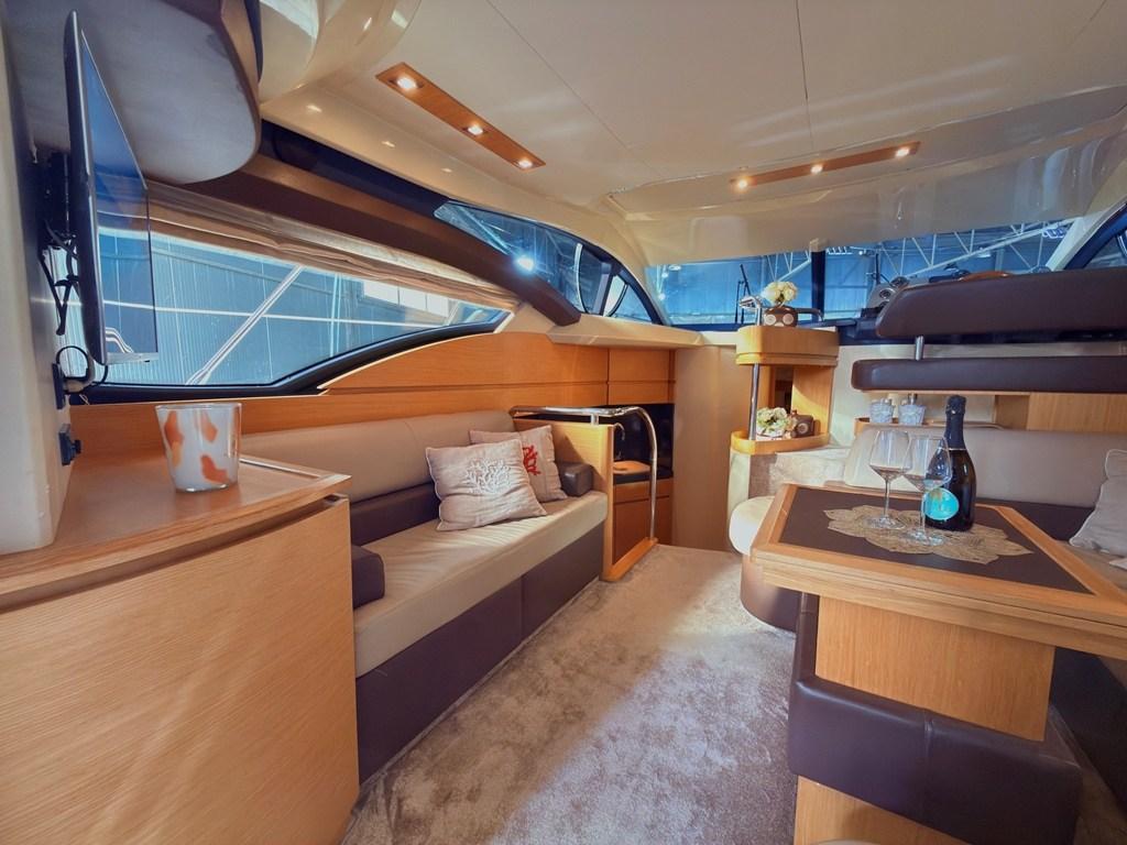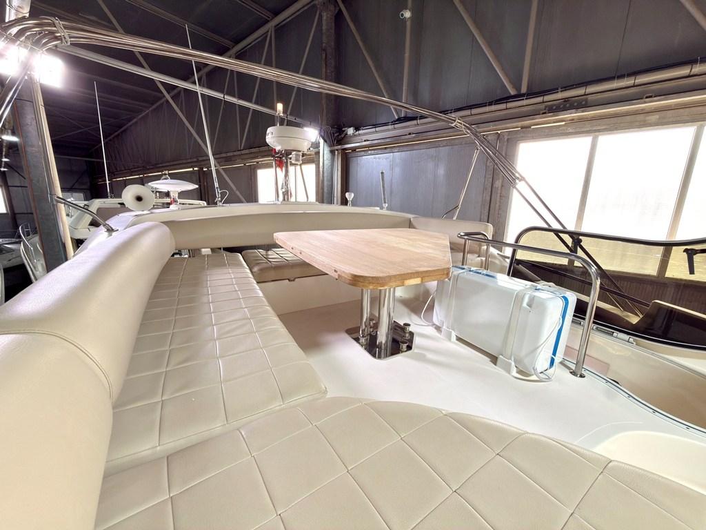 Flaps électriques, Indicateurs de flaps, Passerelle (Idraulica), Plateforme arrière (di poppa con fondo in Teak), Cockpit en teck (e scala di risalita al fly), Guindeau électrique, table de cockpit.
