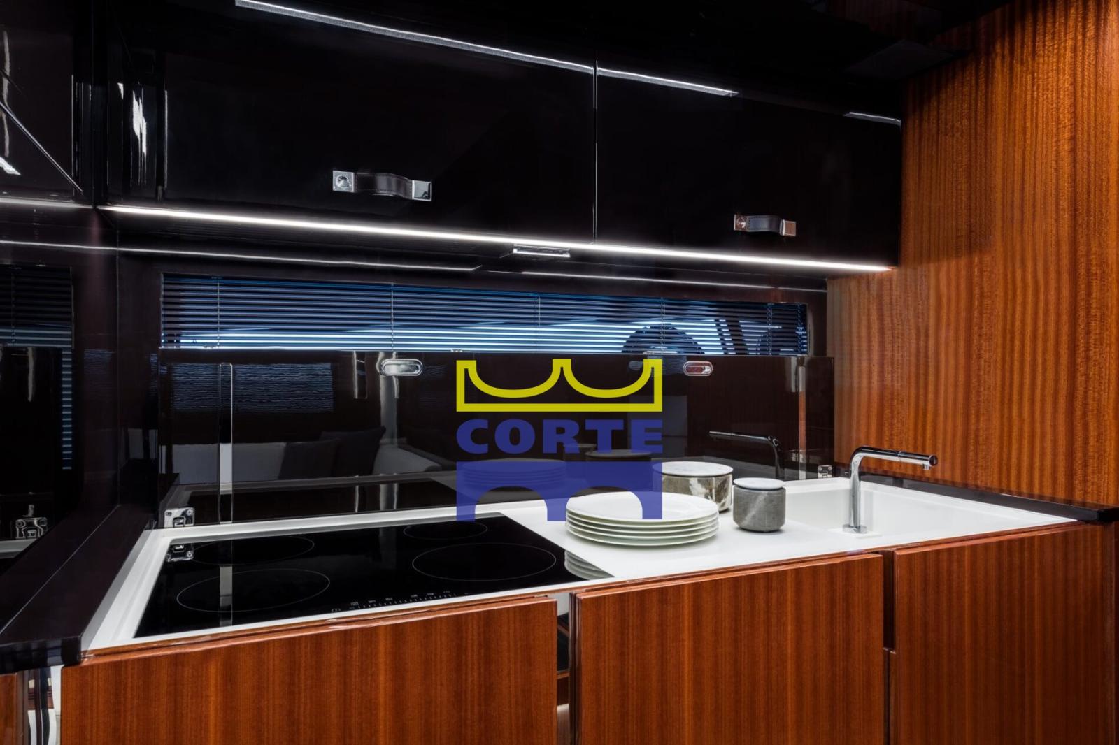 Alarme gaz, Alarme moteur, Alarme de pompe de cale, Eau sous pression, Passavant en teck, Chargeur de batterie (Mastervolt), Câble d’alimentation à quai, Douche de cockpit, Propulseur de poupe (elettrica), Propulseur d'étrave (elettrica), Phare de poursuite, Flaps hydrauliques, Garage à annexe, Extincteur(s) fixe(s), Lavabo dans le cockpit, Passerelle (Besenzoni), Plateforme arrière (tender lift), Pompe de cale automatique, Pont en teck, Porte latérale, Cockpit en teck, Prise de quai, Guindeau électrique, Echelle de bain (idraulica), Stabilisateurs (Sekeper 3400 ore), table de cockpit (in legno), Corne, 2 Winch électrique arrière, Winch électrique avant.