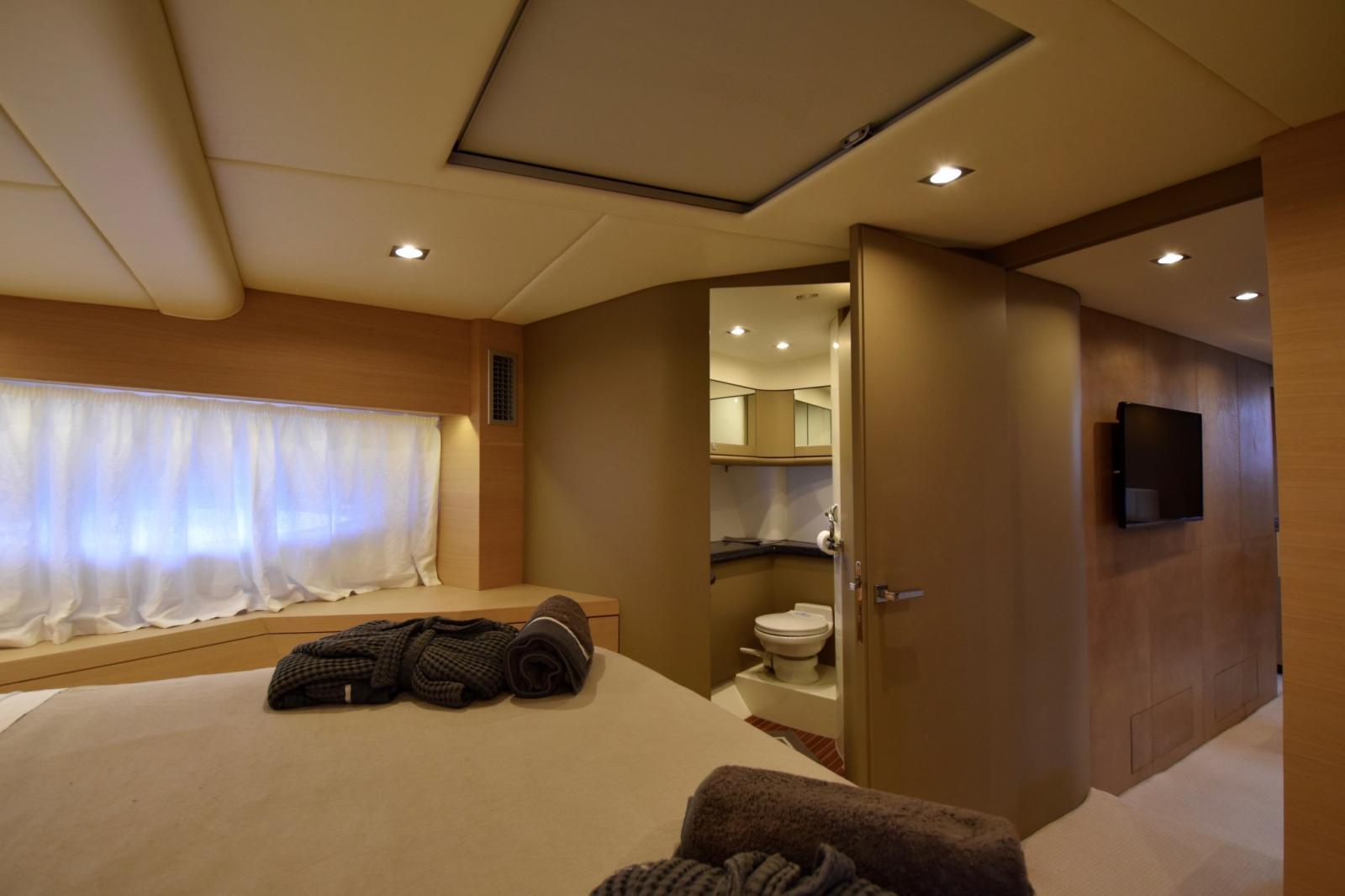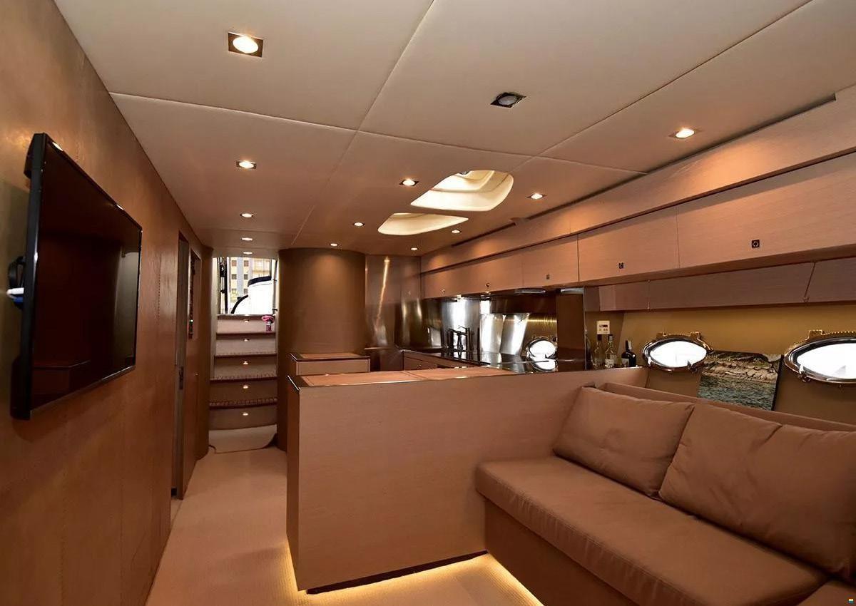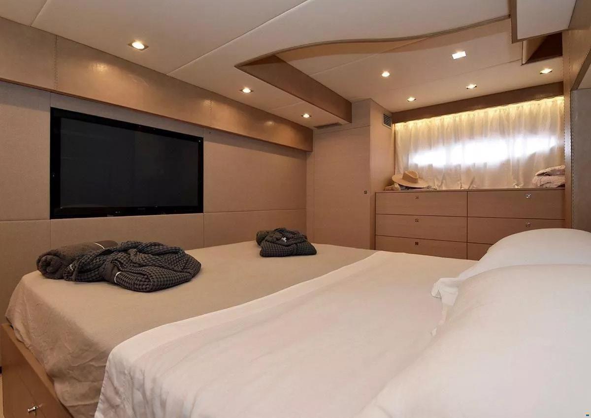 Ancre (Lewmar), 2 Eau sous pression (Gianneschi (220-24V)), 2 Radeau de sauvetage (8 persone - Eurovinil), Chargeur de batterie (Mastervolt), Douche de cockpit, Extincteur(s) fixe(s), Compresseur de plongée, Lavage de chaine, Spots sous-marins, Passerelle (Besenzoni), Plateforme arrière (idraulica), Pompe de cale automatique, Pompe à Eau de Mer, Onduleur, Guindeau électrique, 2 Echelle de bain, Stabilisateurs (Giroscopio ITEM Mare MC2), table de cockpit (abbattibile), 2 Winch électrique arrière.