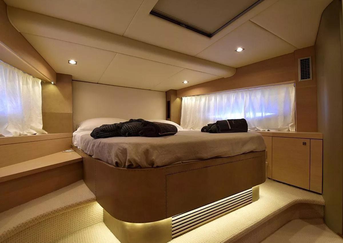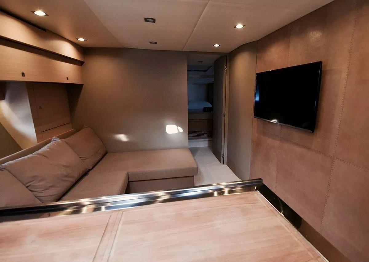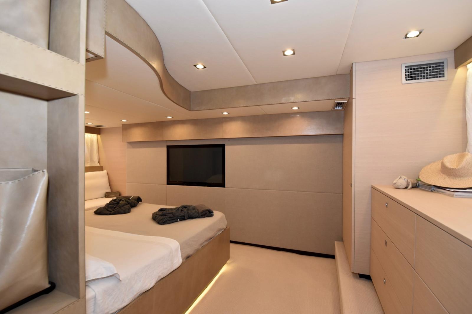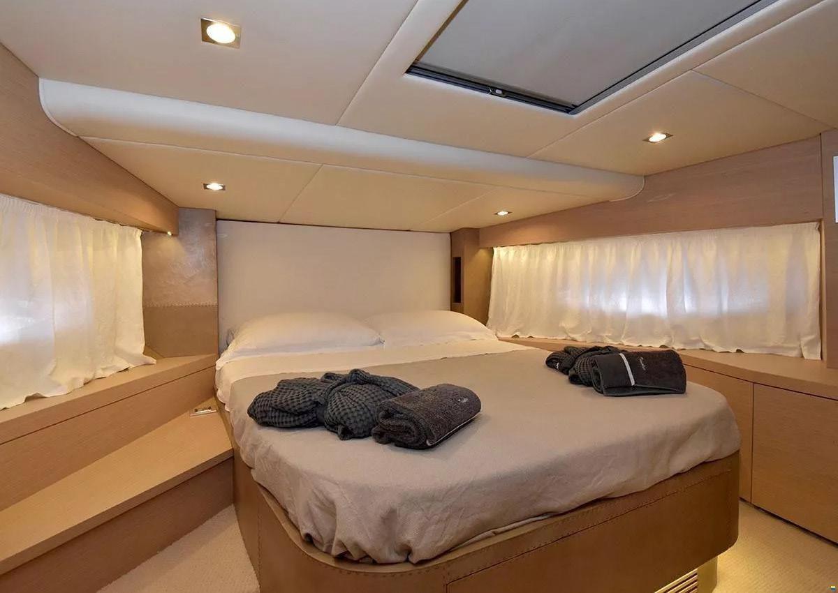 Ancre (Lewmar), 2 Eau sous pression (Gianneschi (220-24V)), 2 Radeau de sauvetage (8 persone - Eurovinil), Chargeur de batterie (Mastervolt), Douche de cockpit, Extincteur(s) fixe(s), Compresseur de plongée, Lavage de chaine, Spots sous-marins, Passerelle (Besenzoni), Plateforme arrière (idraulica), Pompe de cale automatique, Pompe à Eau de Mer, Onduleur, Guindeau électrique, 2 Echelle de bain, Stabilisateurs (Giroscopio ITEM Mare MC2), table de cockpit (abbattibile), 2 Winch électrique arrière.