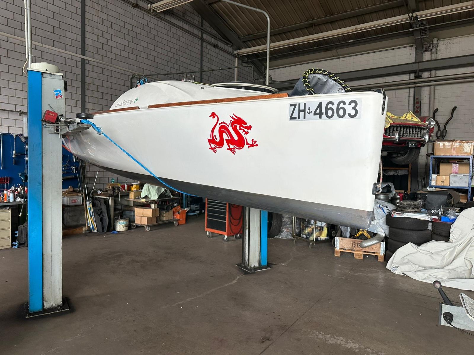 Moteur d'annexe, Défenses (Piatti), Gréement monotoron, Chaise support HB.