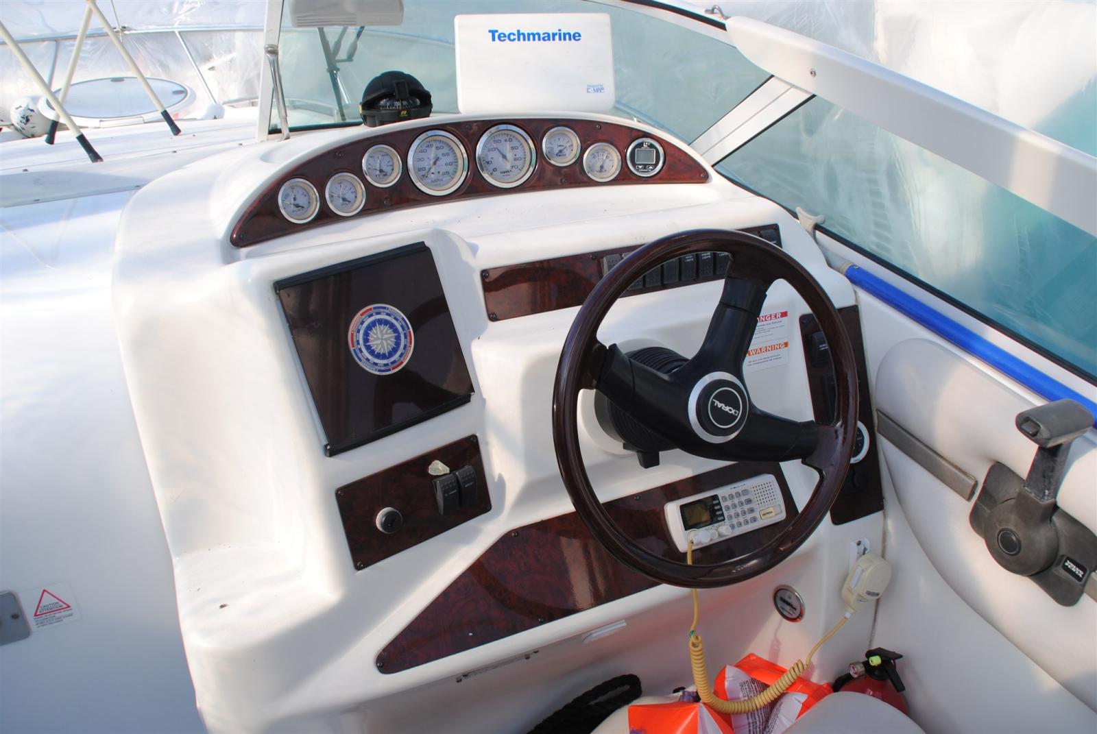 Alarme moteur, Eau sous pression, Douche de cockpit, Lavabo dans le cockpit, Éclairage de courtoisie, Plateforme arrière, Porte latérale, Prise de quai, Guindeau électrique, Echelle de bain, table de cockpit, Table pliante de salon.
