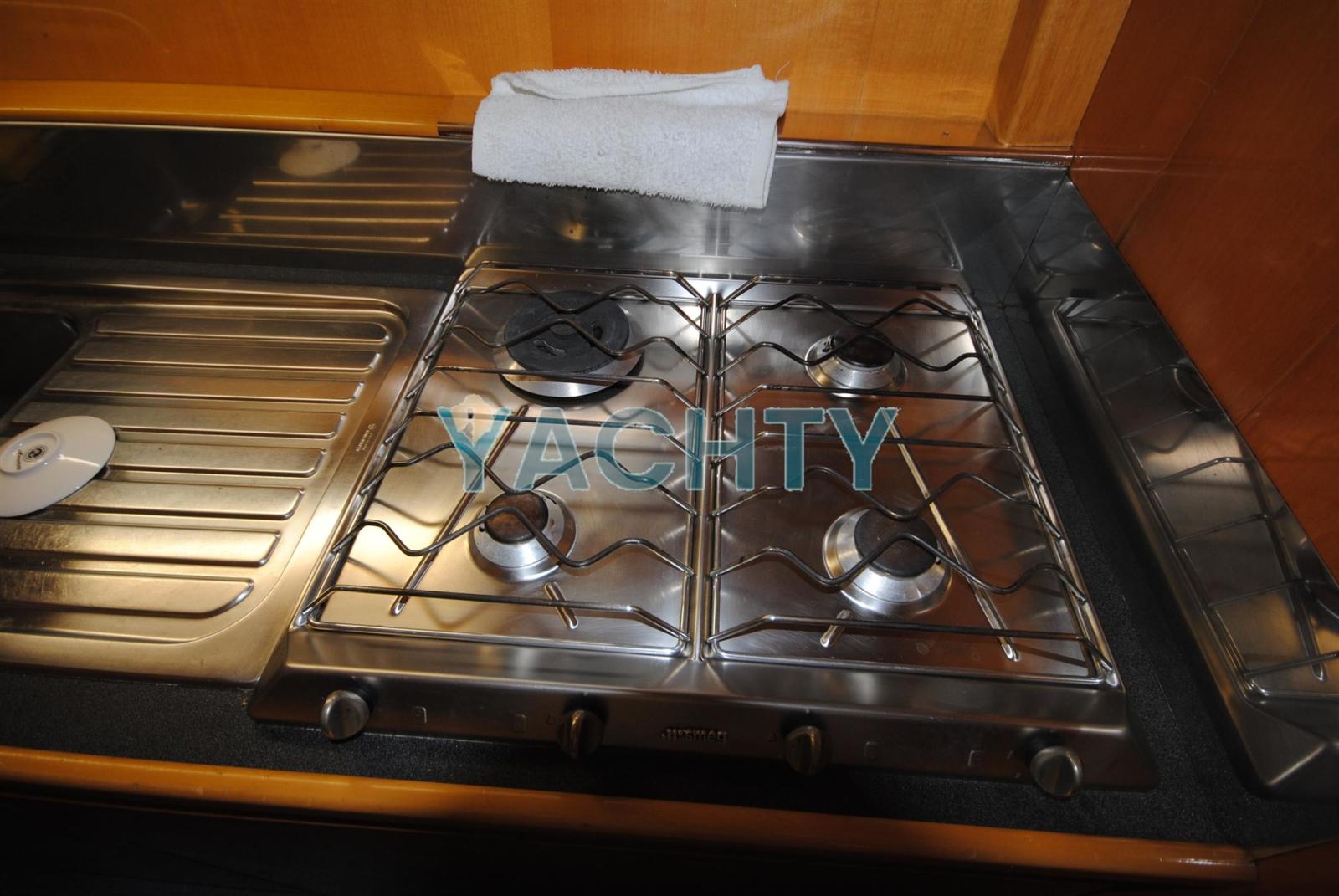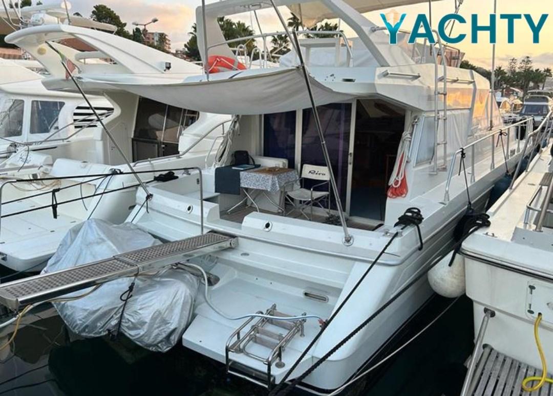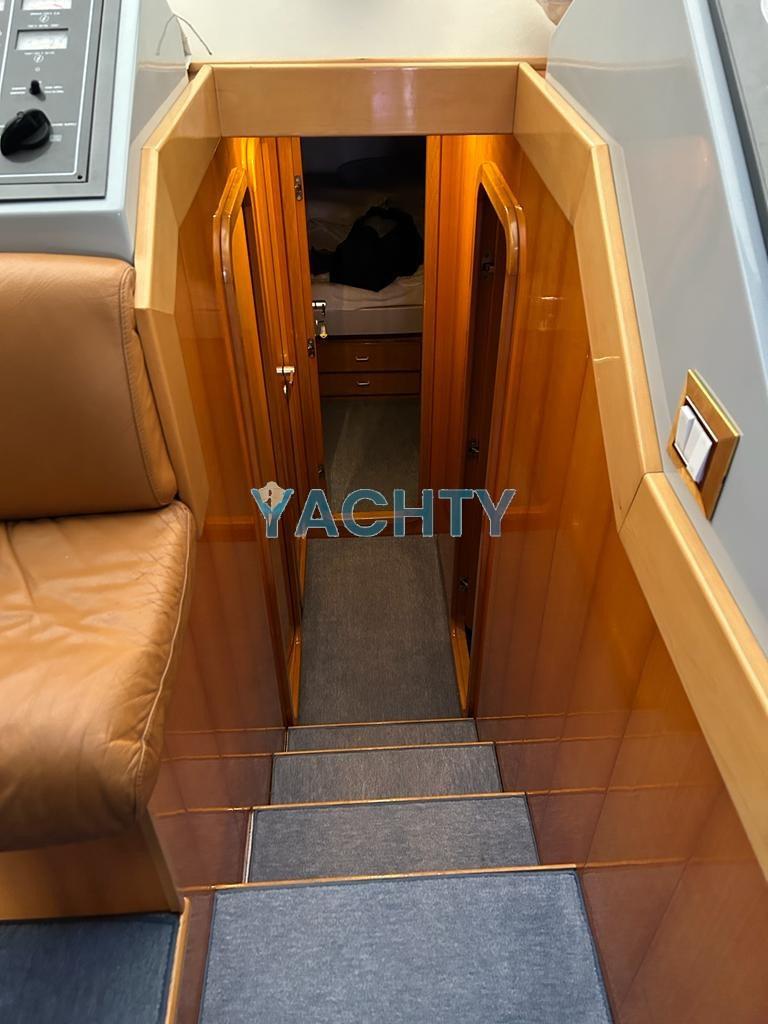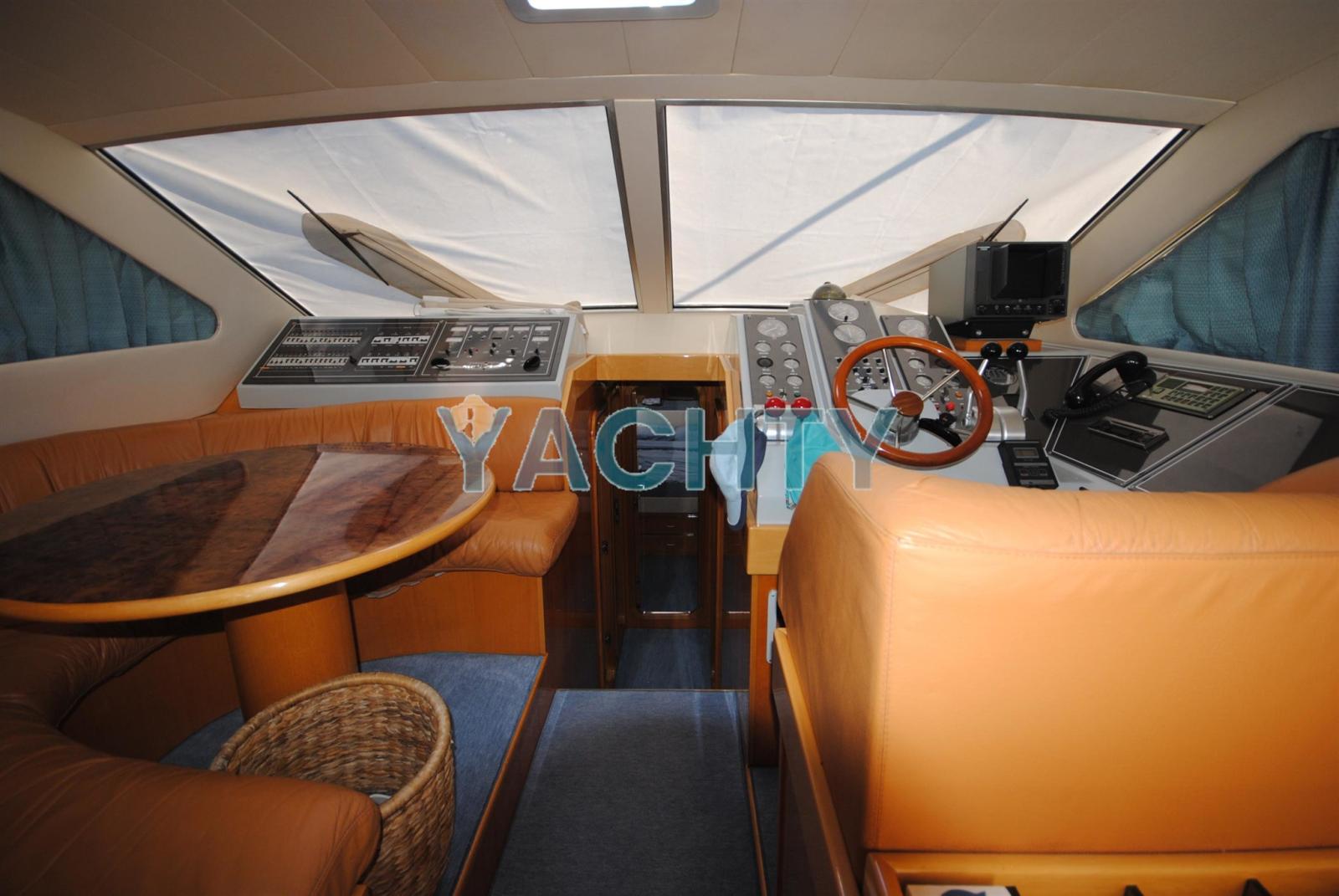 Eau sous pression, Flaps hydrauliques, Passerelle (Idraulica), Plateforme arrière, Cockpit en teck, Guindeau électrique, Winch électrique arrière.