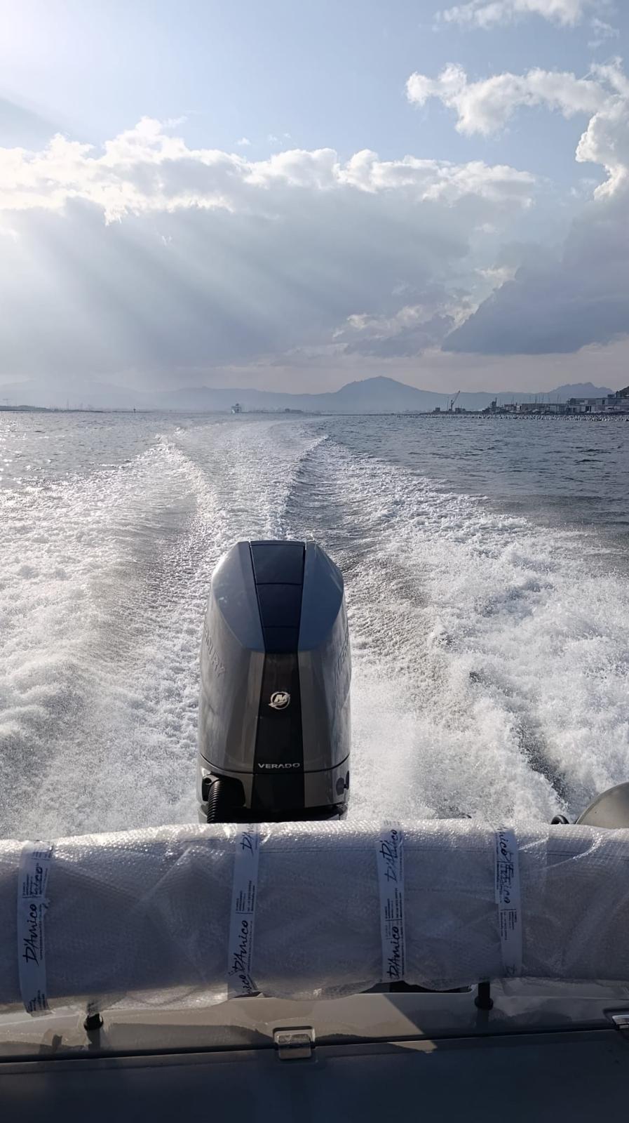 Le bateau est configuré presque entièrement en option et offre tout ce dont vous avez besoin pour passer une agréable journée en mer. Parmi les équipements, on trouve le guindlard électrique, le réfrigérateur intégré dans le cockpit et les bandes antidérapantes sur les tubes, conçus pour accroître la sécurité et éviter les glissades lors de l’embarquement ou des déplacements à bord.