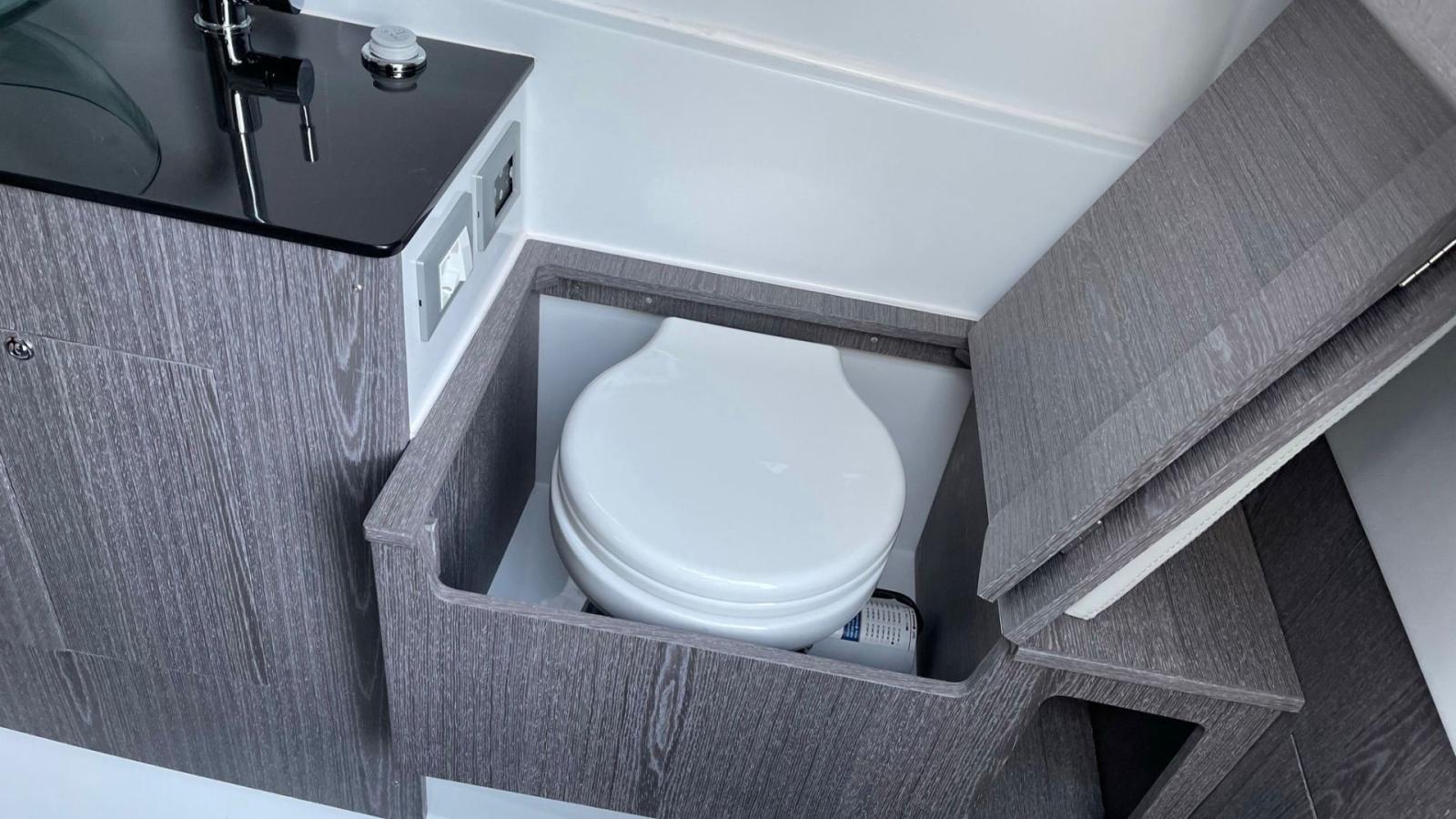 Sous le pont, la rare cabine double avec salle de bain offre intimité et capacité de nuit, rendant cette unité également adaptée pour de courtes croisières côtières, des excursions élégantes d'une journée, ou comme tender de luxe pour un yacht plus grand.