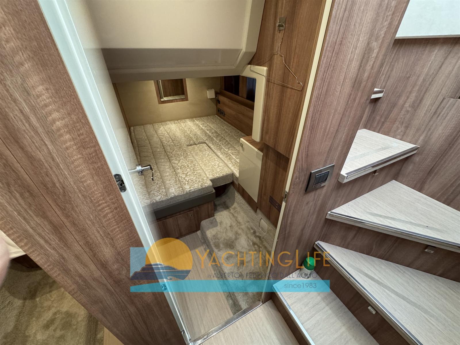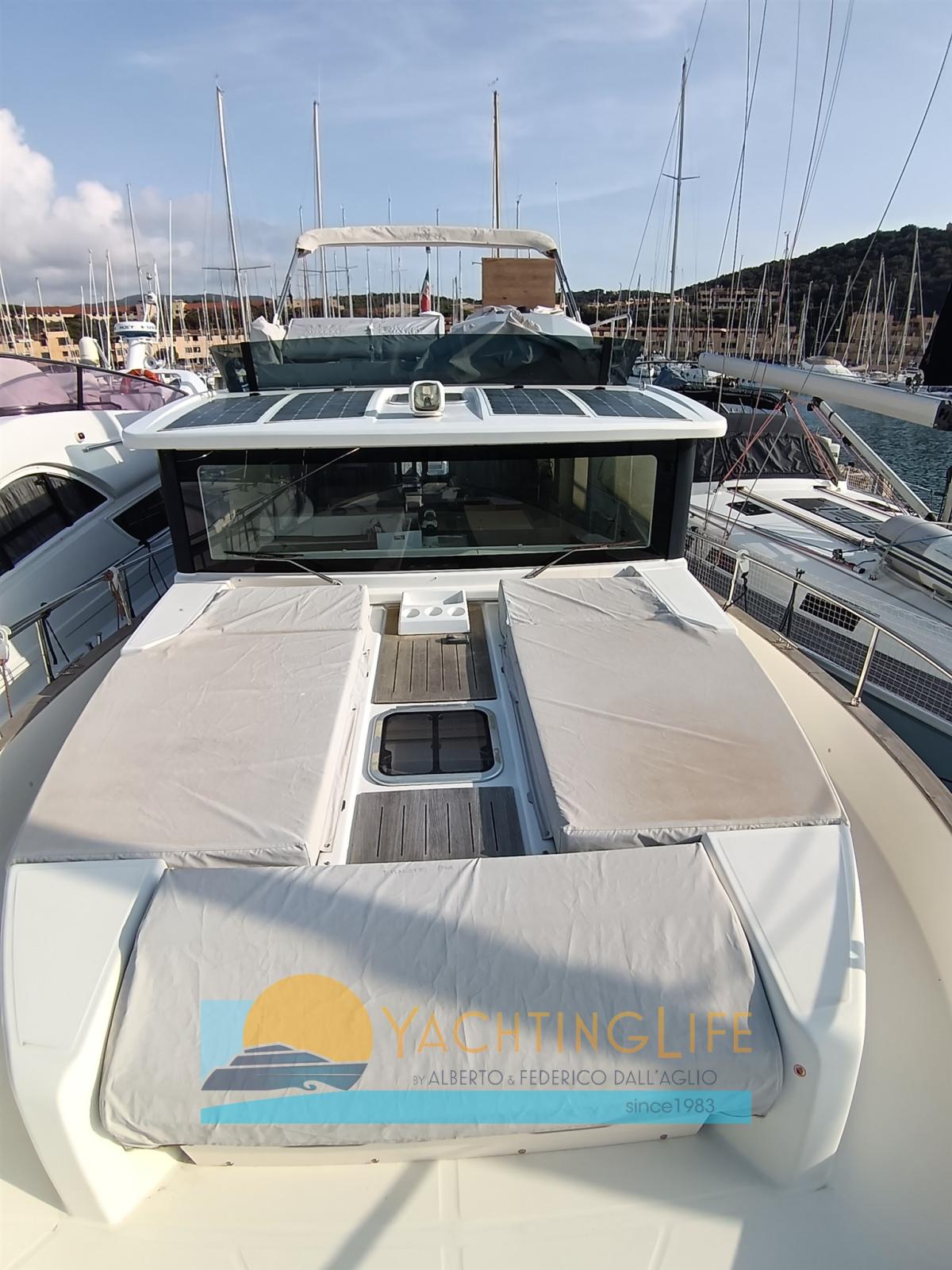 Alarme moteur, Auto Dynamic Trim Interceptor, Eau sous pression, Douche de cockpit, Double barre à roue, Flaps hydrauliques, Extincteur(s) fixe(s), Indicateurs de flaps, Éclairage de courtoisie, Spots sous-marins, Panneau solaire (per ricarica batterie 20Amp-400w), Passerelle (idraulica), Plateforme arrière (idraulica), Pompe de cale automatique, Pompe de cale manuelle, Porte latérale, Cockpit en teck, Prise de quai, Guindeau électrique, Echelle de bain, table de cockpit, Corne.