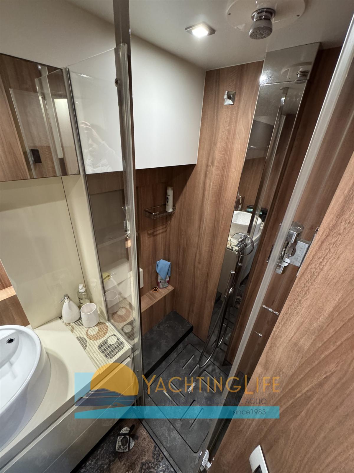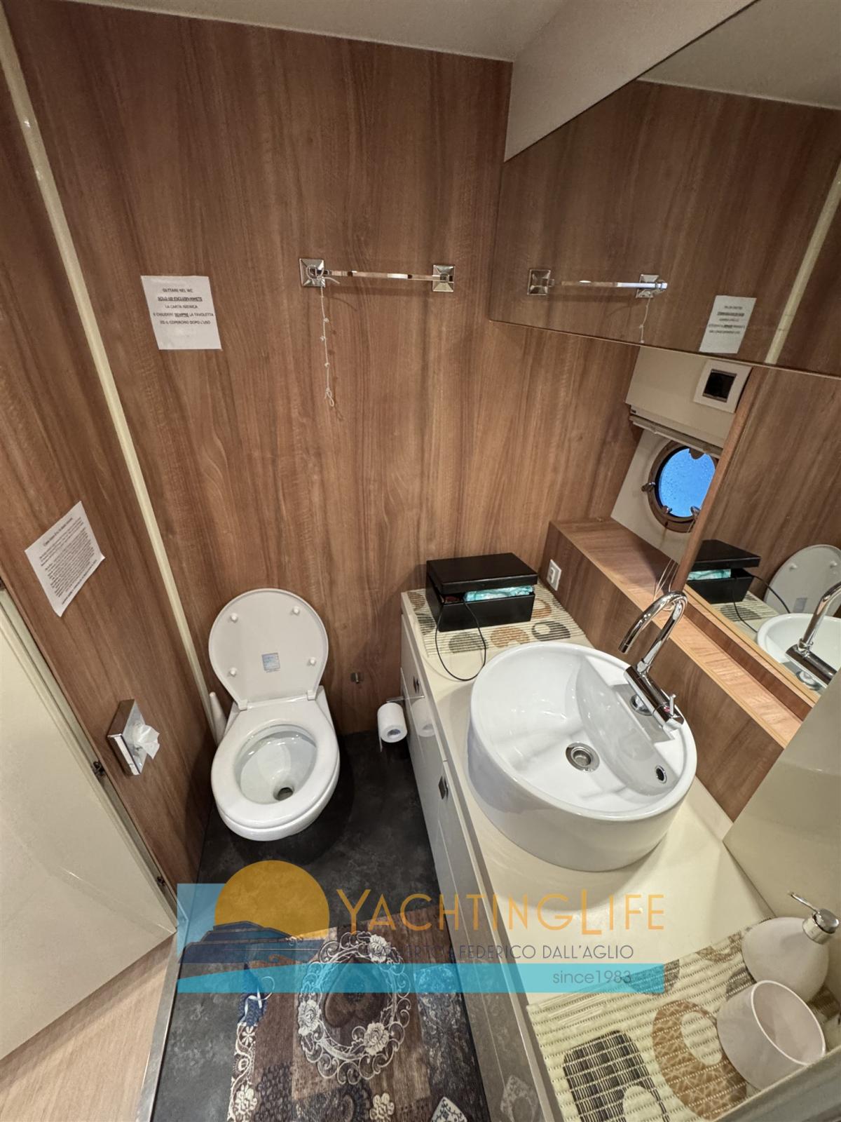 Air conditionné (48000 BTU), BBQ/ Grill (sul fly), Ballon d'eau chaude, Dessalinisateur (120 lt/h), Cuve à eaux noires, Prises interieures 12v, Prises interieures 220v, Caméra vidéo (in sala macchine), 2 Toilettes électriques.