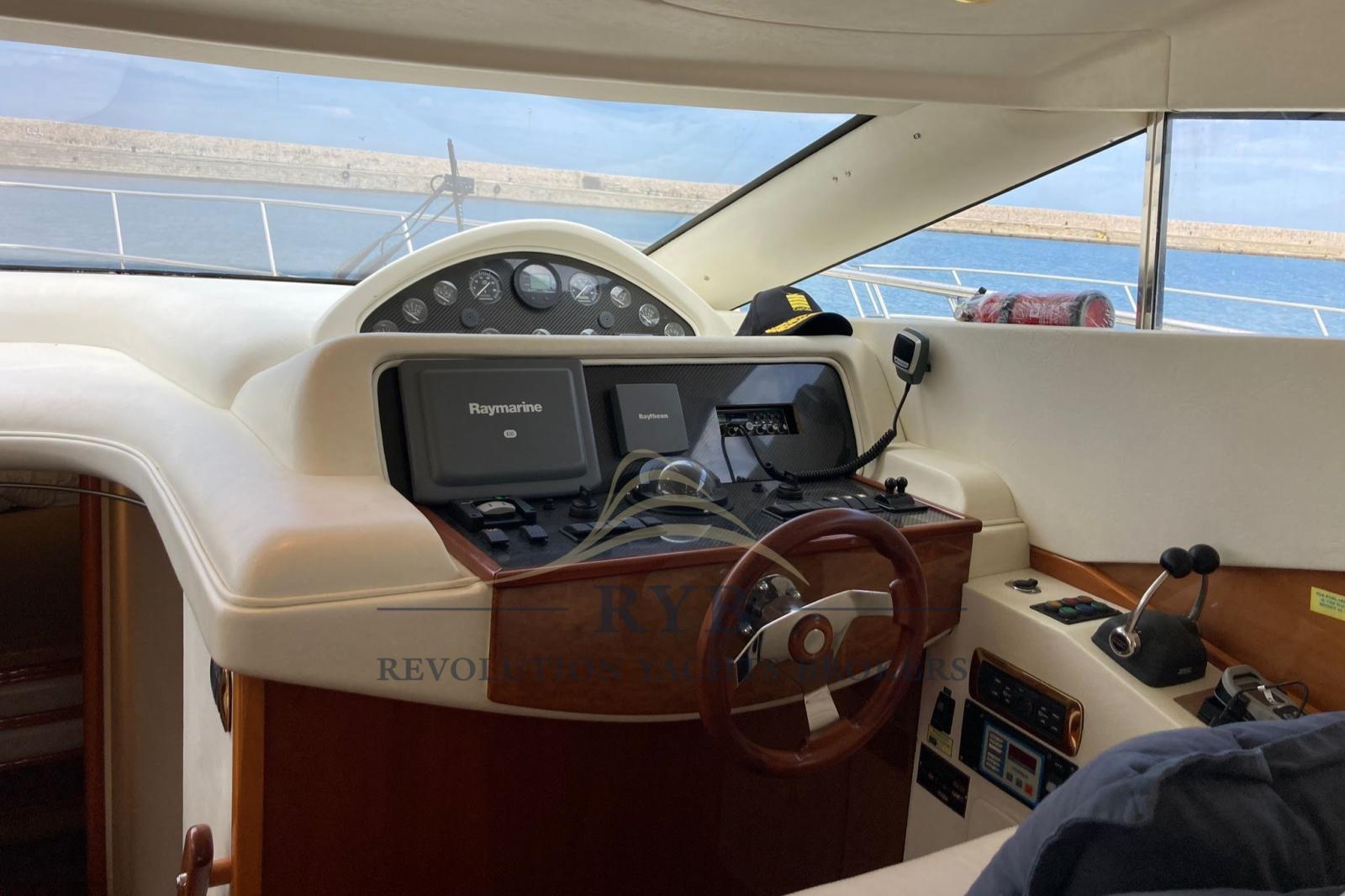 Eau sous pression, Douche de cockpit, Double barre à roue, Phare de poursuite, Flaps hydrauliques, Extincteur(s) fixe(s), Passerelle, Plateforme arrière, Pompe de cale automatique, Porte latérale, Cockpit en teck, Prise de quai, Rollbar, Guindeau électrique, Echelle de bain, Corne.