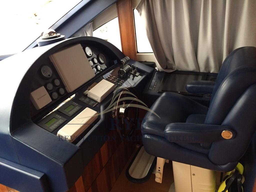 Eau sous pression, Éolienne, Grue de flybridge, Éclairage de courtoisie, Spots sous-marins, Passerelle, Plateforme arrière, Porte latérale, Cockpit en teck, Rollbar, Guindeau électrique, Echelle de bain, table de cockpit, Annexe (IN FLY), Winch électrique arrière.