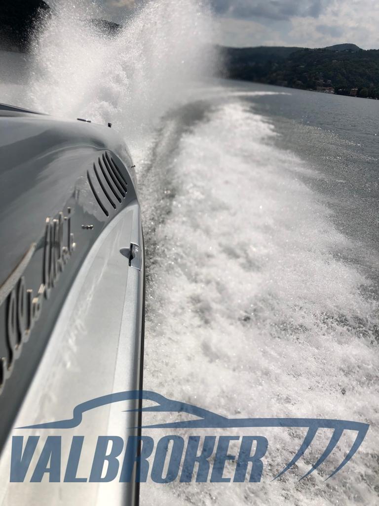 Bateau à moteur offshore rapide du chantier naval du lac de Côme. Lignes épurées, excellente navigabilité. Bain de soleil confortable à l’arrière. Propre et bien rangé, entièrement fonctionnel. Propulsé par 2x300HP Cummins V6 ligne diesel avec seulement 194 heures de fonctionnement. Réduction de la consommation. Piles neuves.