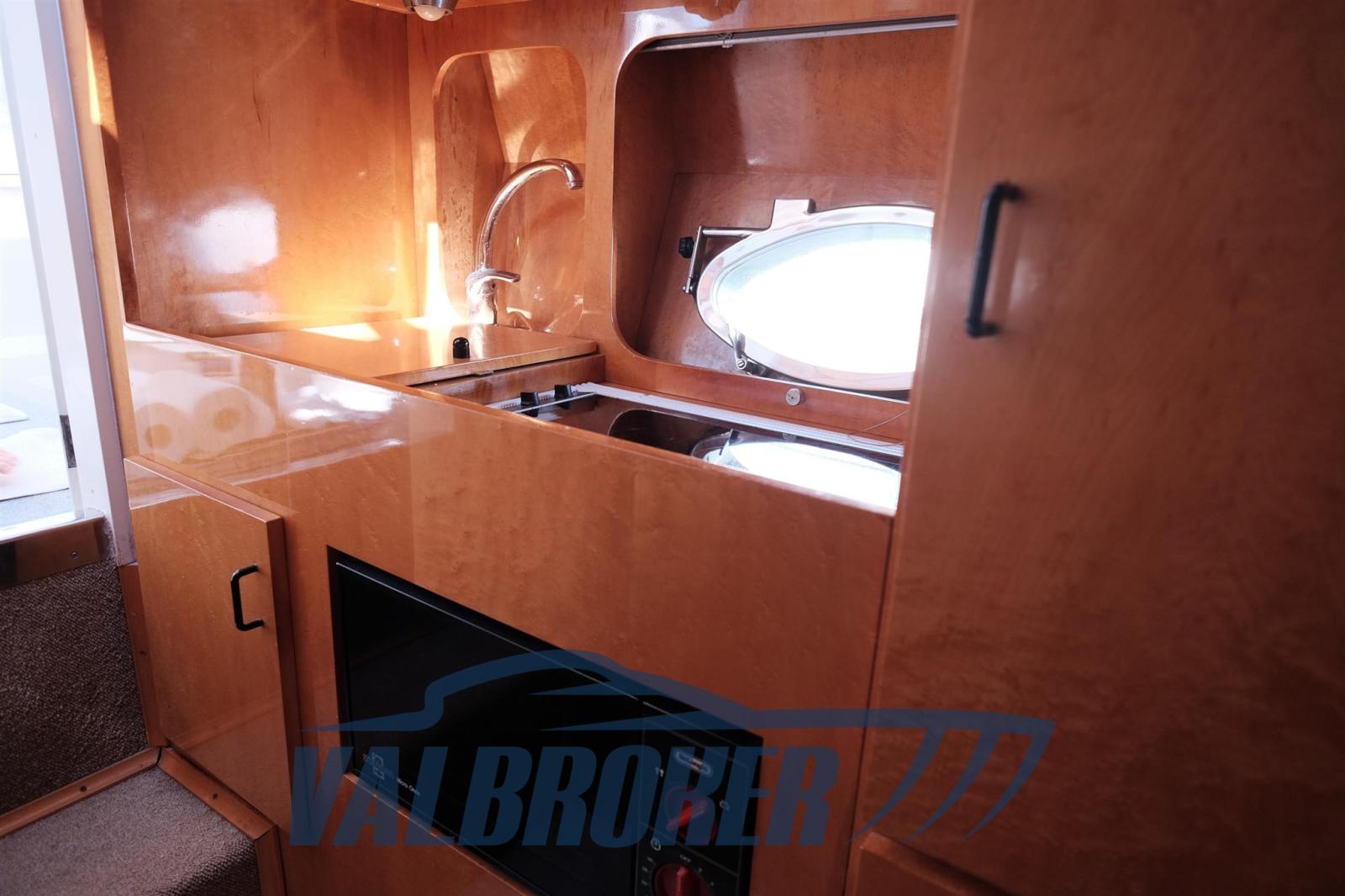 Le Colombo 41 est un bateau à la coque généreuse et au style unique. À l’origine, elle était équipée de 3 moteurs Volvo Penta de 200 CV chacun, qui ont ensuite été remplacés en 2022 par le plus moderne Volvo Penta KAD 300 6 cylindres diesel de 2x285 CV. Très faible consommation. Transmissions entièrement révisées. Emplois photo disponibles.