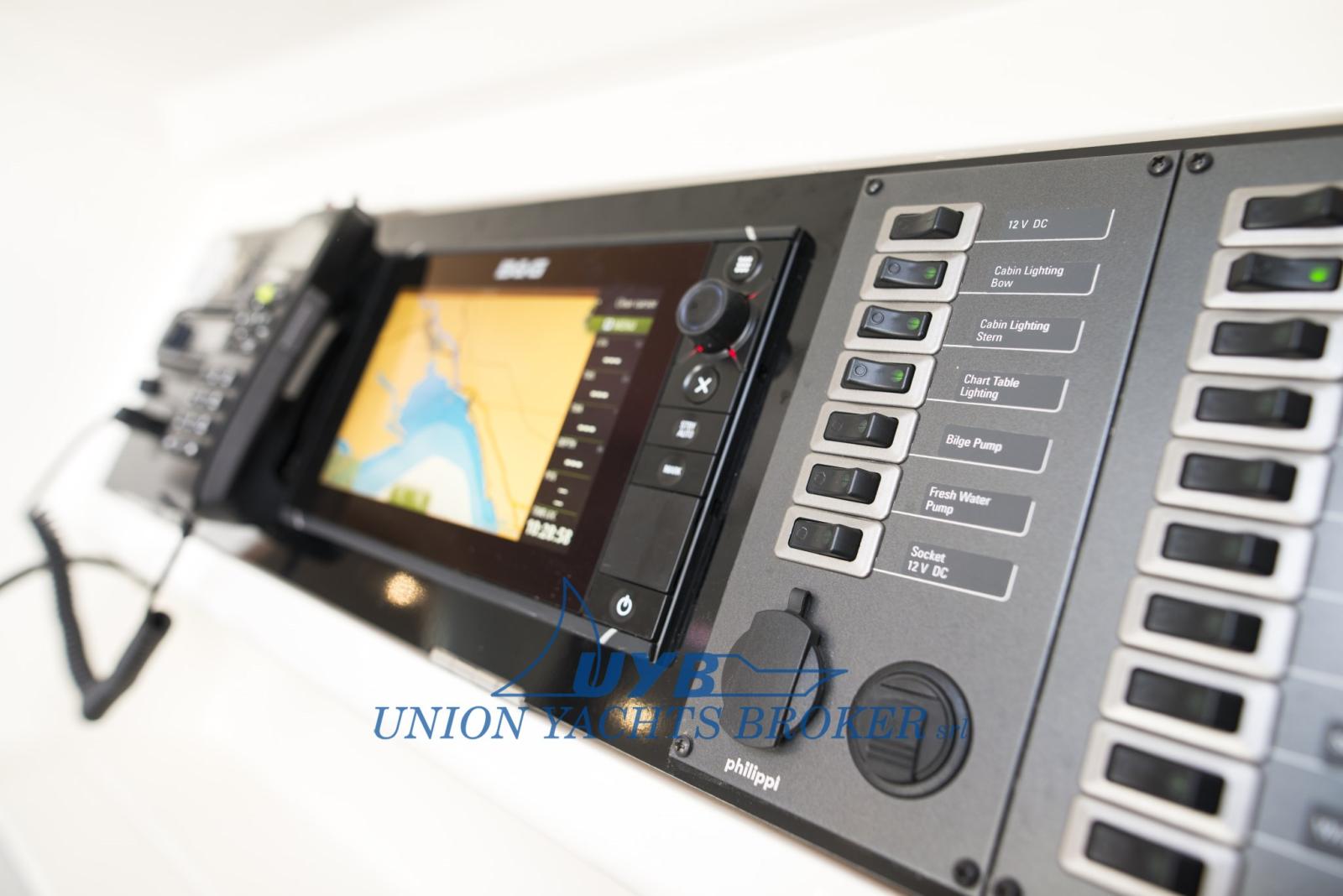 Sondeur pêche (B&G Triton 2 completo di:N 01 display digitale, sensori speed/depth/wind), Pilote automatique (B&G Triton 2 pilota:, tastiera di comando, main processor, sens. angolo di barra, staffa tiller e attuatore idraulico,bussola Precision 9 inclusa), Plotter GPS (GARMIN Chartplotter GPSMAP 923 - Display 9" con cartuccia Navionic+), Radio VHF (B&G V60B VHF con ricevitore / trasmettitore AIS, antenna, cavo e staffa).