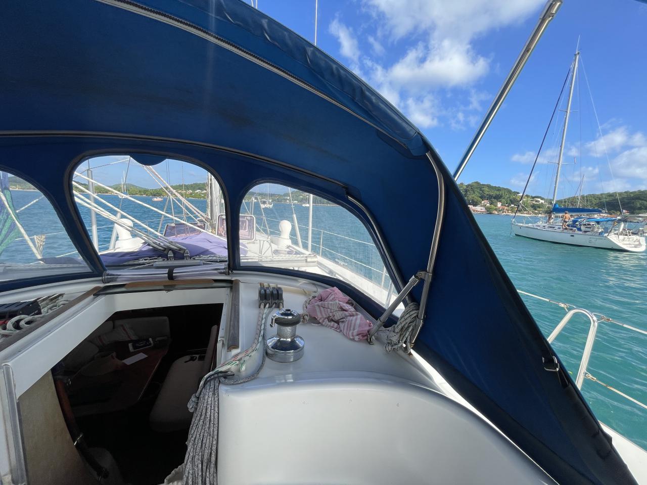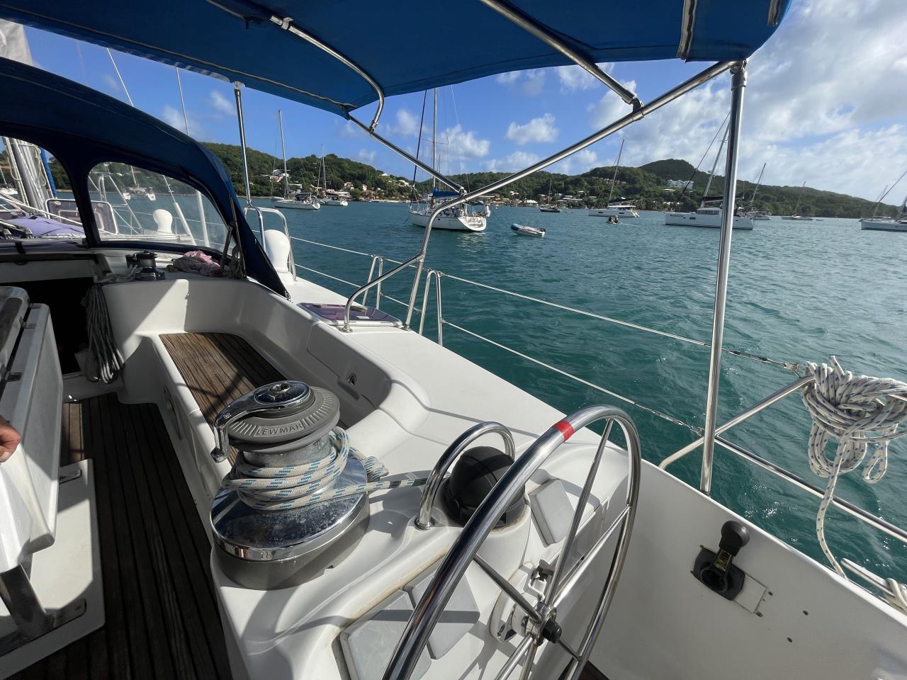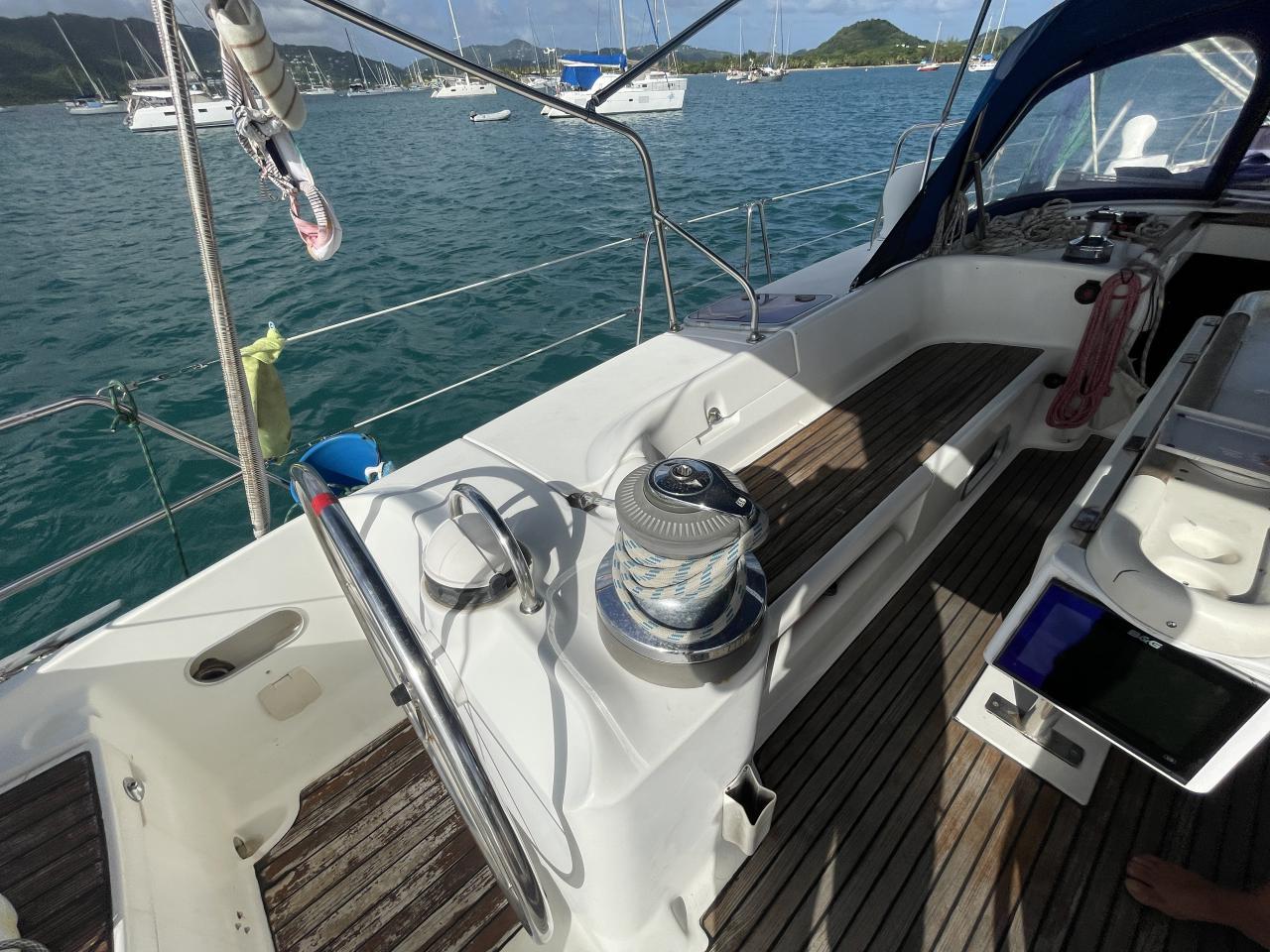 Sur le roof, un winche Lewmar 30 ST et un Lewmar 40 ST électrique sur le côté bâbord