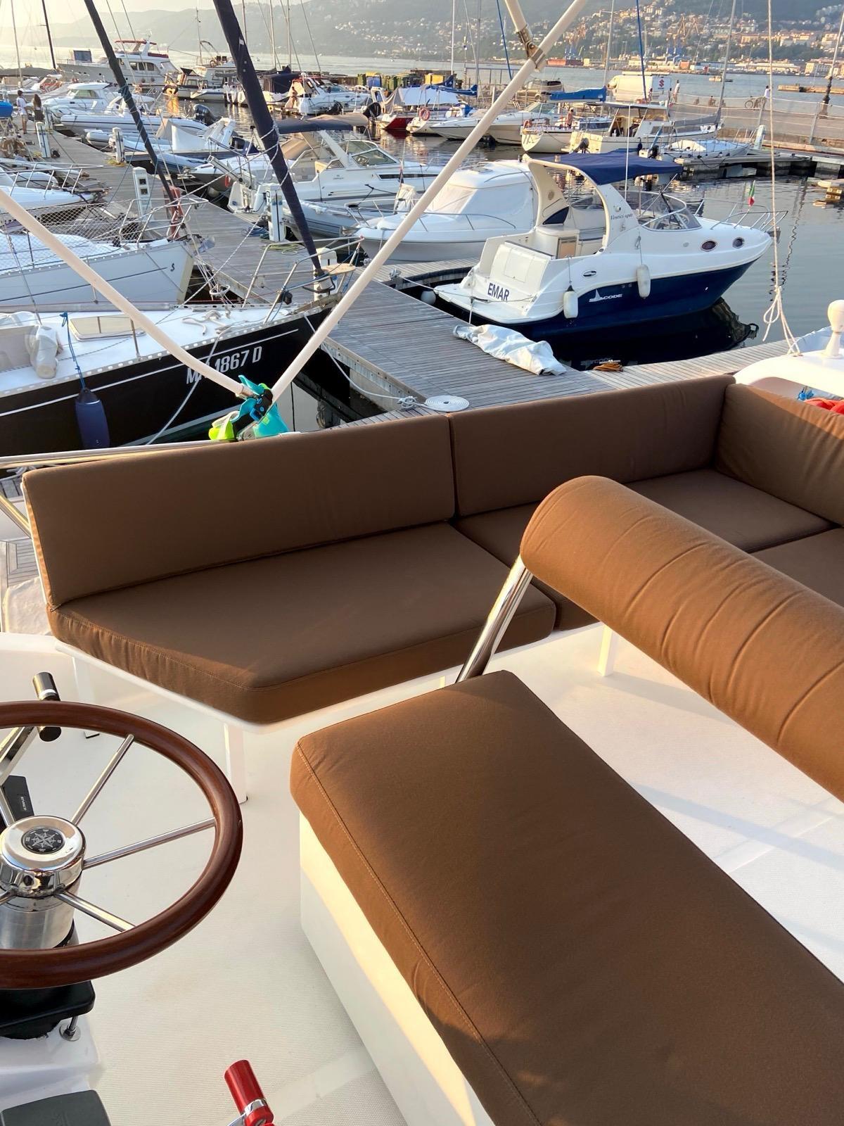 Taud de cockpit, Coussins arrieres, Sellerie de fly (tapezzeria nuova), Tauds de pare-brise, Taud de console, Taud de siège, Taud de soleil.