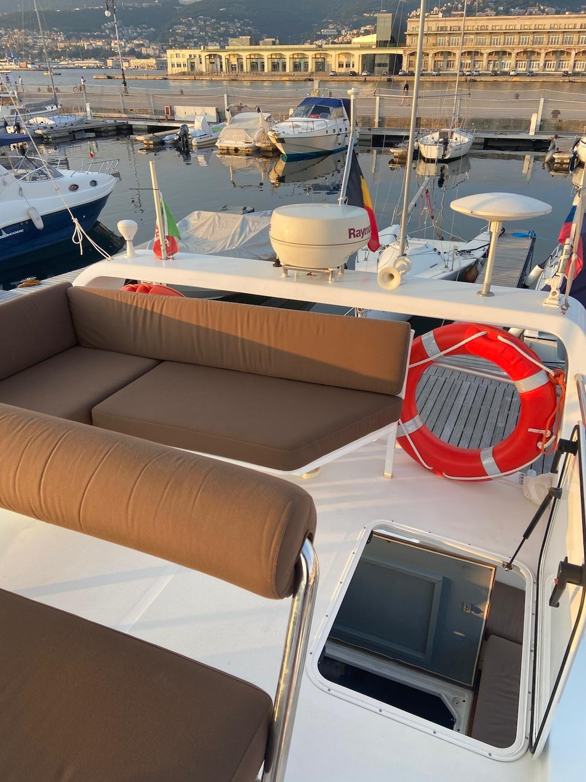 Alarme moteur, Eau sous pression, Batteries (nuove), Douche de cockpit, Phare de poursuite, Flaps hydrauliques, Bossoirs, Passerelle (idraulica con telecomndo), Plateforme arrière, Porte latérale, Cockpit en teck, Prise de quai, Connexion eau sous pression à quai, Onduleur, Rollbar, Guindeau électrique, Echelle de bain, table de cockpit, Corne.