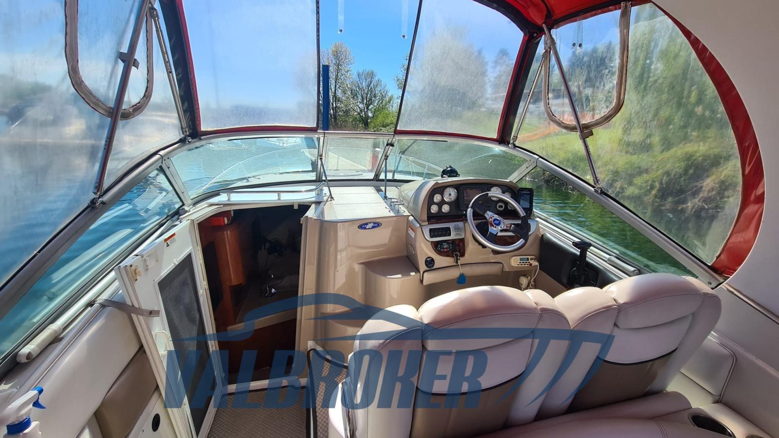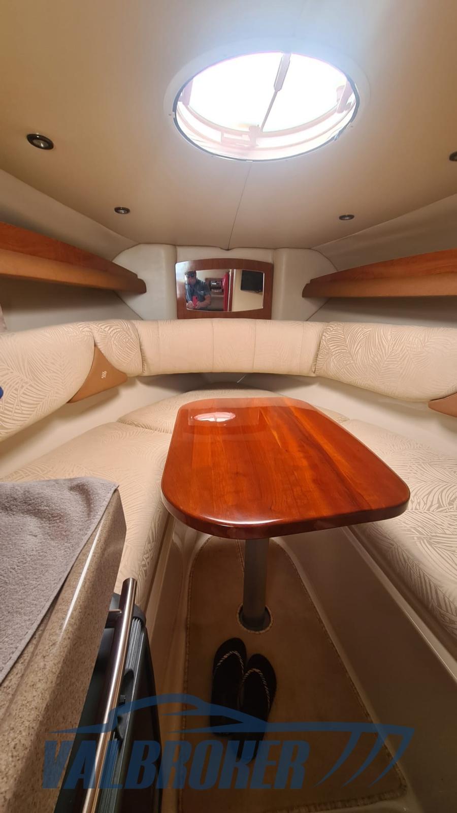 Chantier naval américain, propulsé par un moteur essence Volvo Penta 5,7 gi Dp-S V8 1x280 chevaux. Dinette convertible en lit double en forme de V à l’avant, couchette à la poupe, salle de bain avec porte.