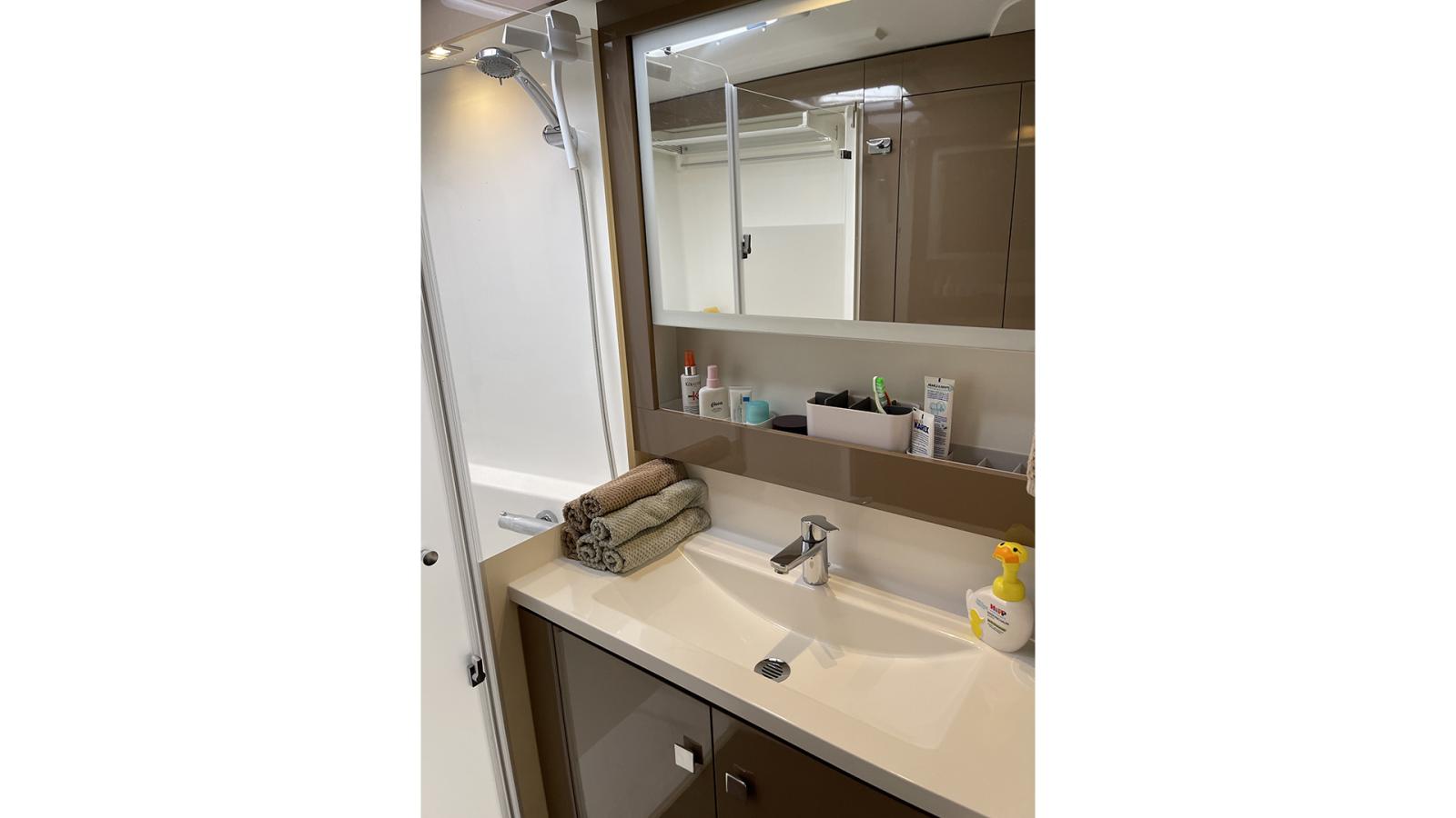 2 cabines invités à bâbord, chacune avec sa salle de bain privative comprenant toilettes et douche.