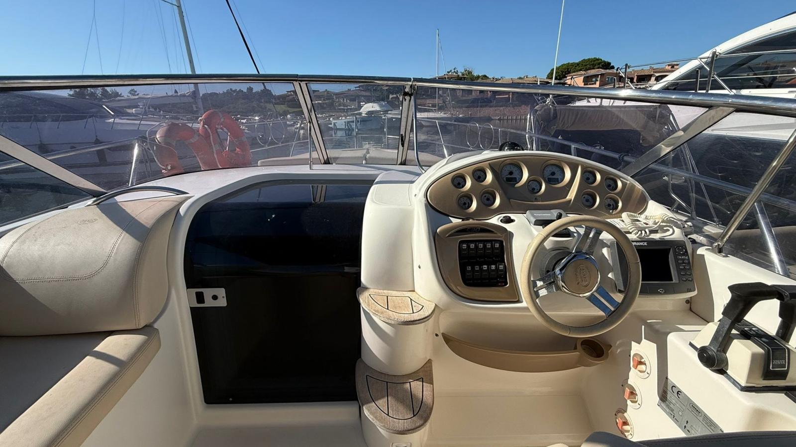 2 Alarme moteur, Alarme de pompe de cale, Alternateur, Eau sous pression, Douche de cockpit, Propulseur d'étrave (Lewmar), Phare de poursuite, Flaps hydrauliques, Extincteur(s) fixe(s), Lavabo dans le cockpit, Défenses, Passerelle, Plateforme arrière, 2 Pompe de cale automatique, Porte latérale, Prise de quai, Connexion eau sous pression à quai, Onduleur, Rollbar, Guindeau électrique, Echelle de bain, table de cockpit, Table pliante de salon, Corne, Winch électrique avant.