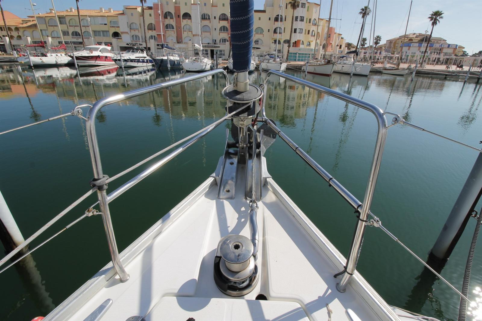 Alarme moteur, Ancre (type Charrue), 4 Winch selftailing, Eau sous pression (groupe remplacé en 2024), 3 Batteries (x 250ah AGM de 2024 + batterie moteur remplacé en 2024), Câble d’alimentation à quai (remplacé par câble de puissance en 3x3,5), Douche de cockpit, Double barre à roue, Hélice de rechange, Moteur d'annexe (6cv 4t), Panneau solaire (x100w), Plateforme arrière, Pompe de cale manuelle, Onduleur, Guindeau électrique (1000w), Echelle de bain, Chaise support HB, table de cockpit, Annexe (4 personnes plancher gonflables).