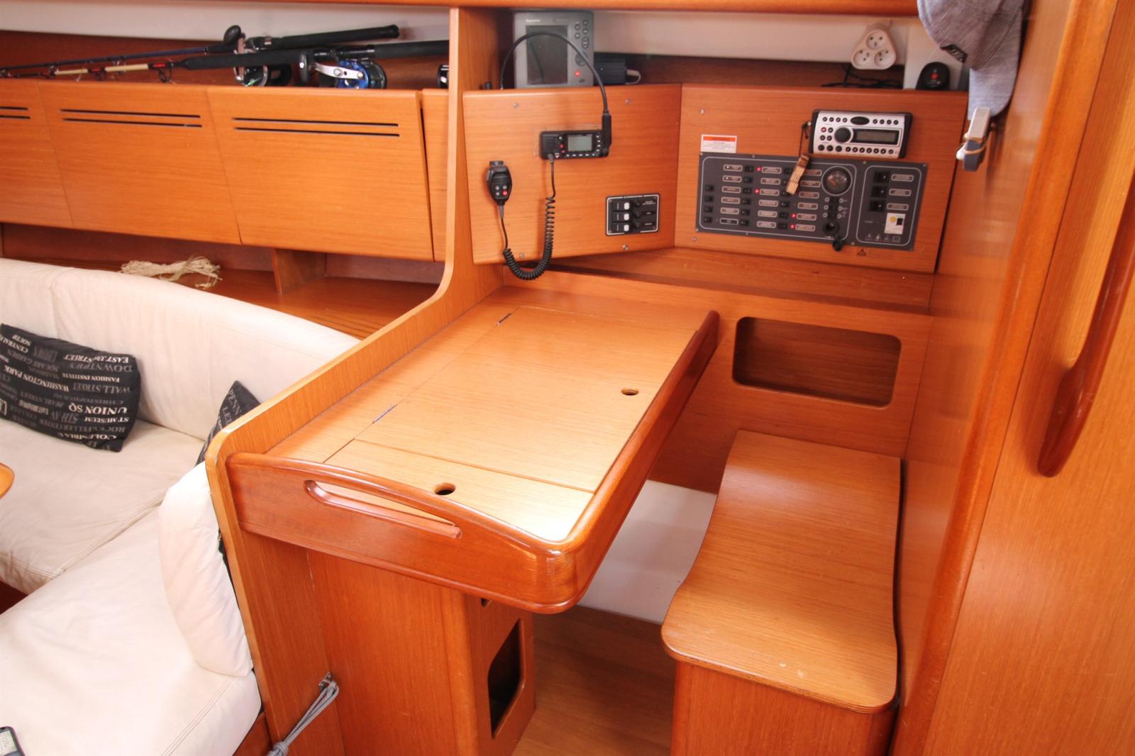 AIS (CLASSE B (émet/recep) CAMINO 108 relié NMEA2000 sur GPS), 2 Compas, Loch (Raymarine ST60 relié en NMEA2000 sur GPS), DSC VHF (avec ASN et AIS en reception), GPS (GARMIN 922 avec réseau NMEA2000), Pilote automatique (Raymarine ST6001), Sondeur (Raymarine ST60), Anémomètre/Girouette (Raymarine ST60 relié en NMEA2000 sur GPS).