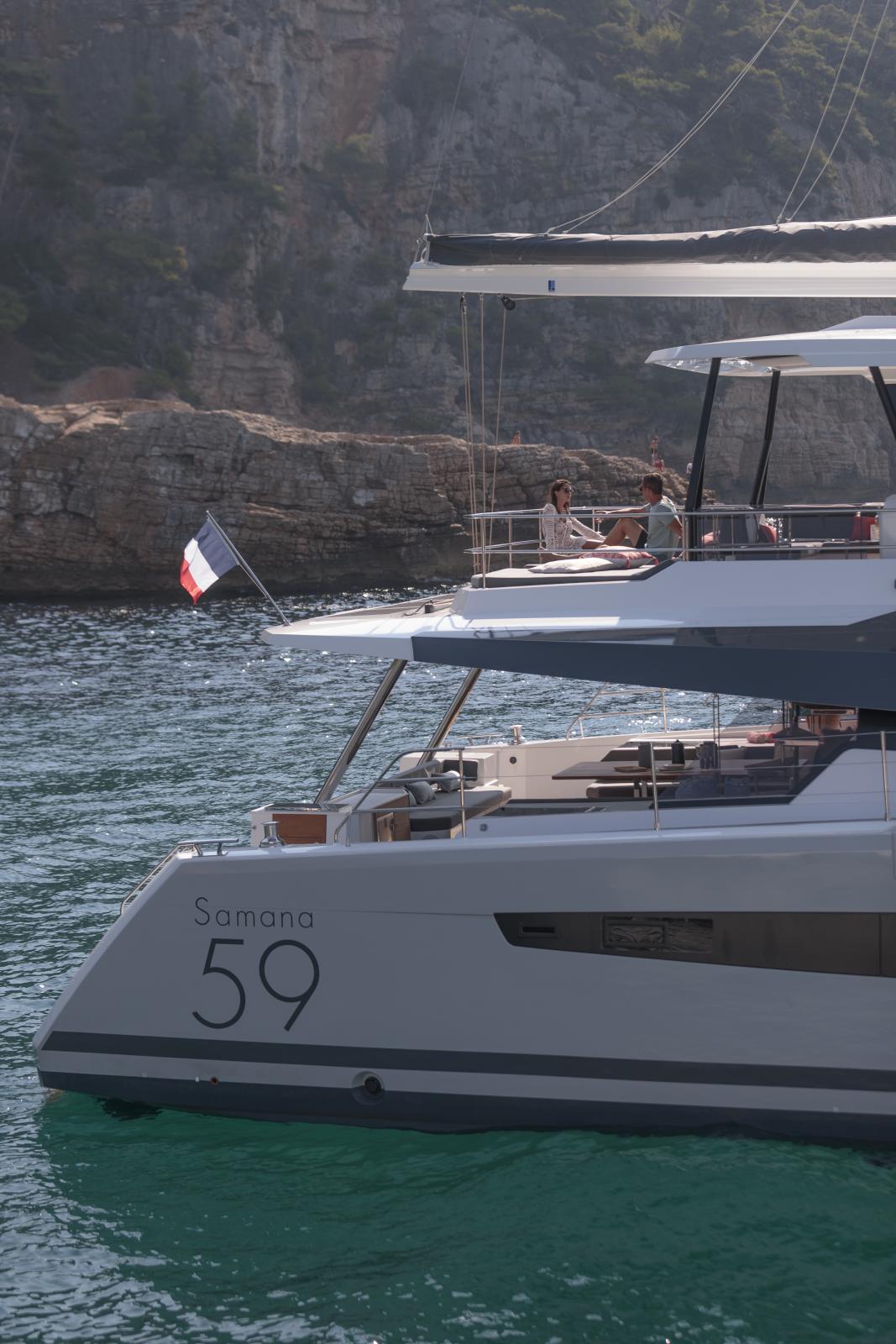 Possédant le plus grand flybridge dans sa catégorie, le SAMANA 59 est avant tout un voilier de propriétaires, qui veulent étonner leurs invités. Avec sa longueur de 18,78m, le SAMANA 59 est un catamaran qui offre une vraie liberté, tant dans le dessin des espaces que dans leur aménagement. Les espaces de réception ont été particulièrement bien dotés, partant du principe que ses propriétaires seront ravis d'y accueillir famille, amis ou encore compagnons de route rencontrés au mouillage. Sa versatilité au niveau des coques, allant de 4 à 6 cabines, ou encore son incroyable flybridge, véritable terrasse sur l'eau, en font un bateau très plaisant à vivre au quotidien. Que ce soit au mouillage ou sur une traversée océanique, ou plus encore.