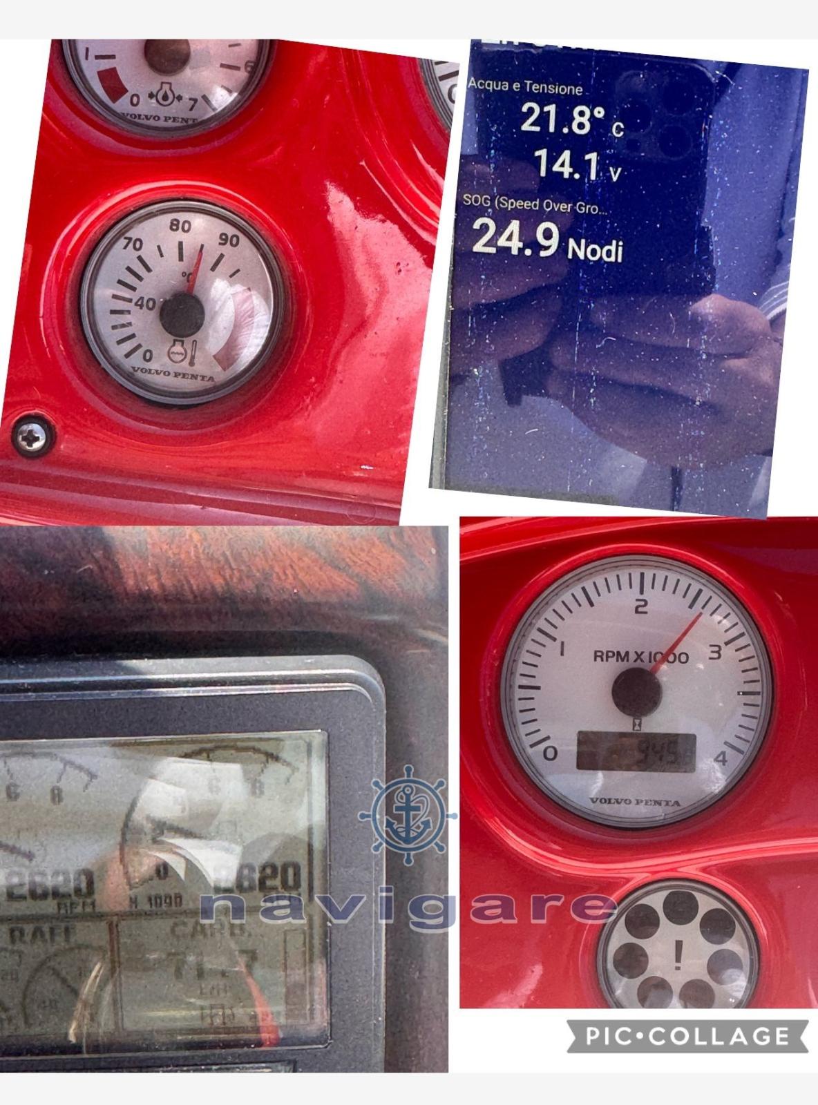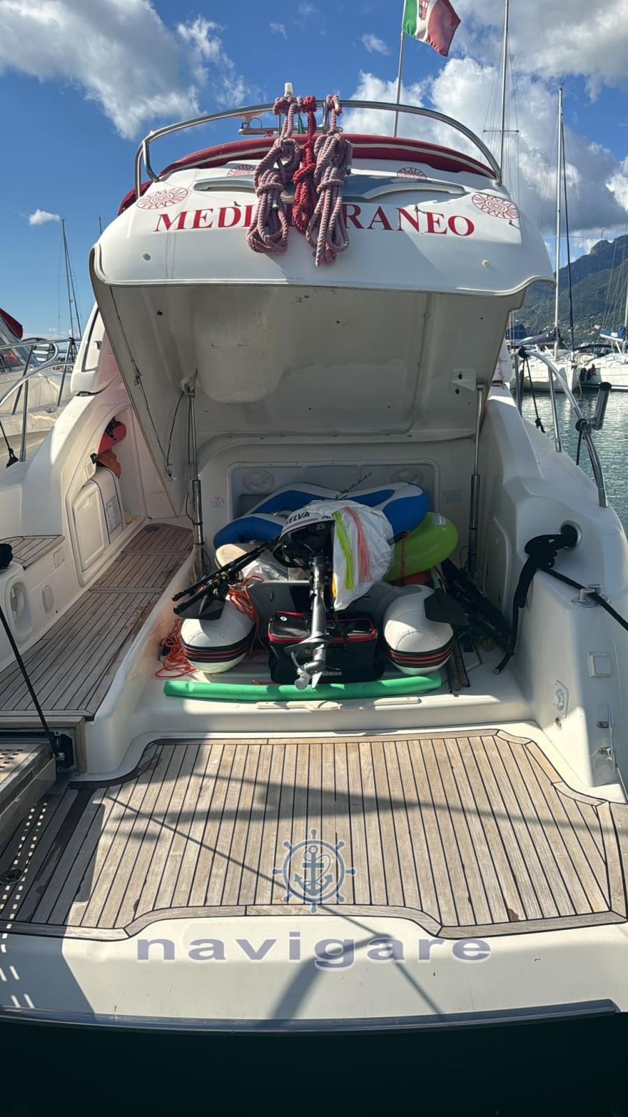 Alarme moteur, Alarme de pompe de cale, Eau sous pression, Douche de cockpit, Flaps électriques, Éclairage de courtoisie, Passerelle (idraulica), Pompe de cale automatique, Cockpit en teck, Prise de quai, Guindeau électrique, Echelle de bain, table de cockpit, Annexe, Corne.