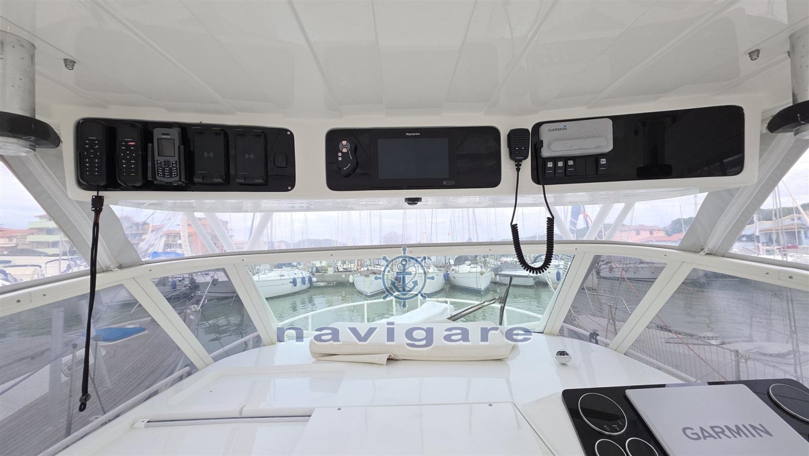 Indicateur d'angle de barre, 2 Commande électrique (2022 DOPPIA STAZIONE, DI CUI UNA RIMOVIBILE SUL TRINCARINO DI POPPA), 2 Sondeur pêche (2023 GARMIN), 4 GPS (2023 3xGARMIN 8412 ( UNO RIMOVIBILE CON ATTACCHI DI POPPA PER VISIONE DURANTE LA PESCA ) + 1 RAYMARINE AXIOM 9), Feux de navigation (2022), Pilote automatique (2025 GARMIN CON COMANDO A DISTANZA), Plotter GPS, Radar (2023 GARMIN 36 MIGLIA), Radio VHF (2023), Téléphone satellite (2023 Turaya con antenna esterna).