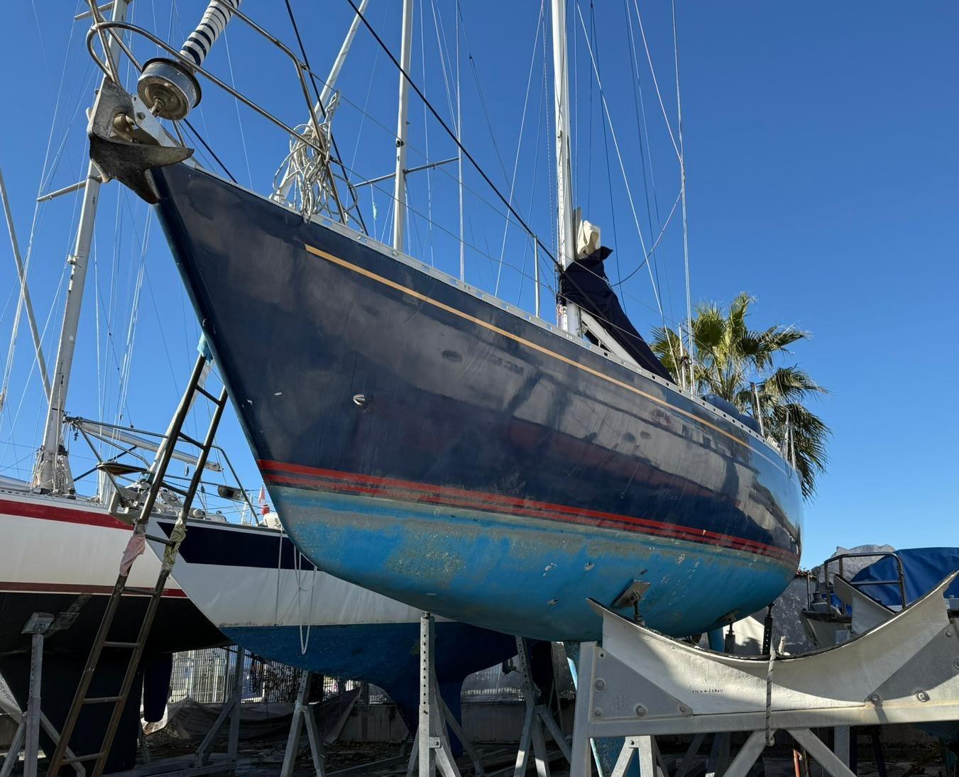 Remplacement du hauban 2023 - Mât révisé - Chaudière révisée - Nouveau feu de mât et de proue - Remplacement des chauffages du tableau électrique - Peinture du pont - Chauffeur du cockpit - nouvelle table extensible - Auvent 2023 -