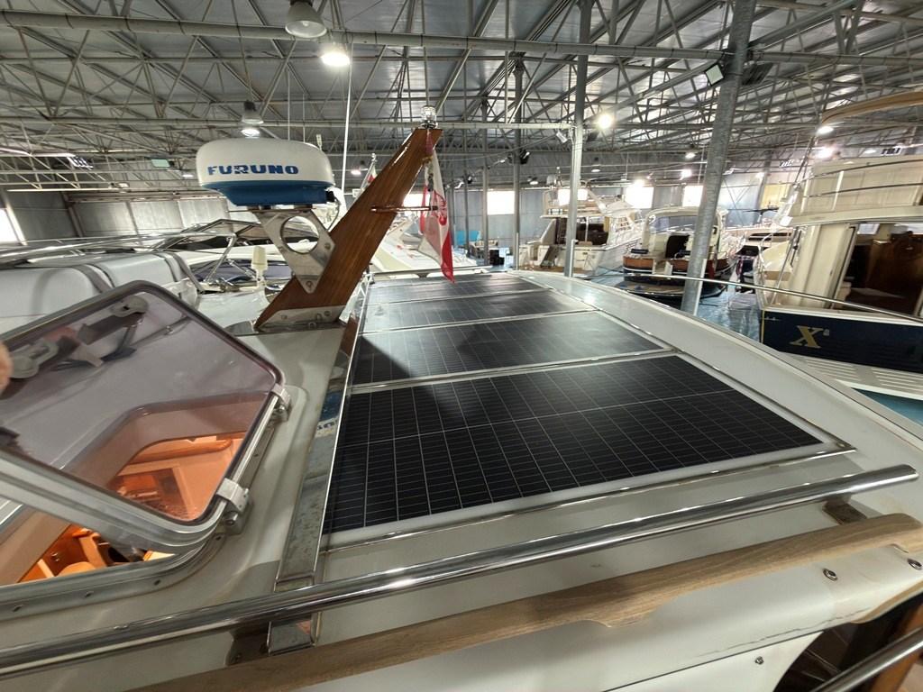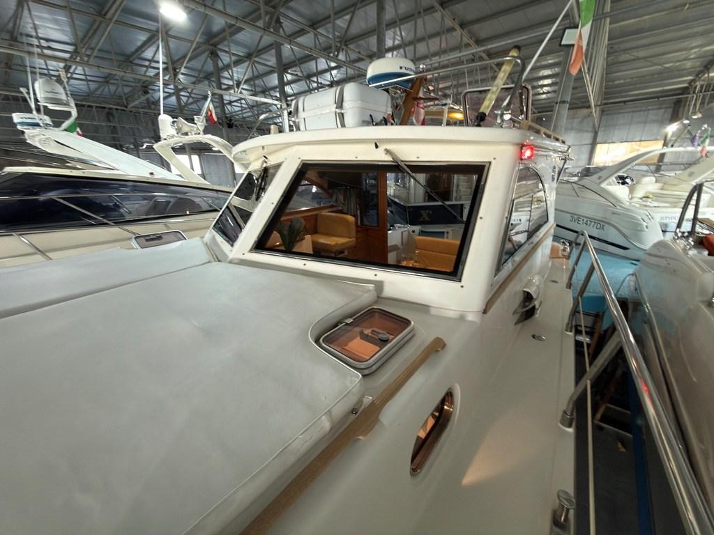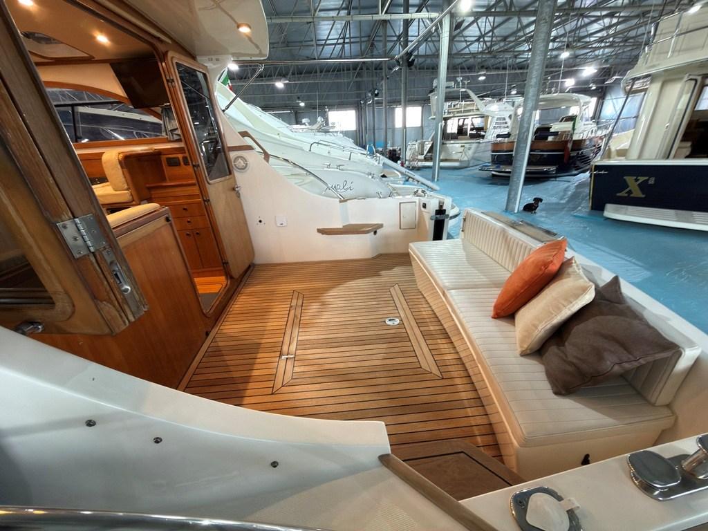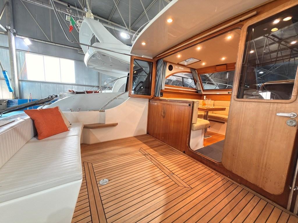Auto Dynamic Trim Interceptor (Zipwake), Passerelle (Idraulica), Plateforme arrière (con fondo in teak), Pompe à Eau de Mer, Porte latérale (in legno), Cockpit en teck, Prise de quai, Guindeau électrique, Table pliante de salon, Winch électrique avant.