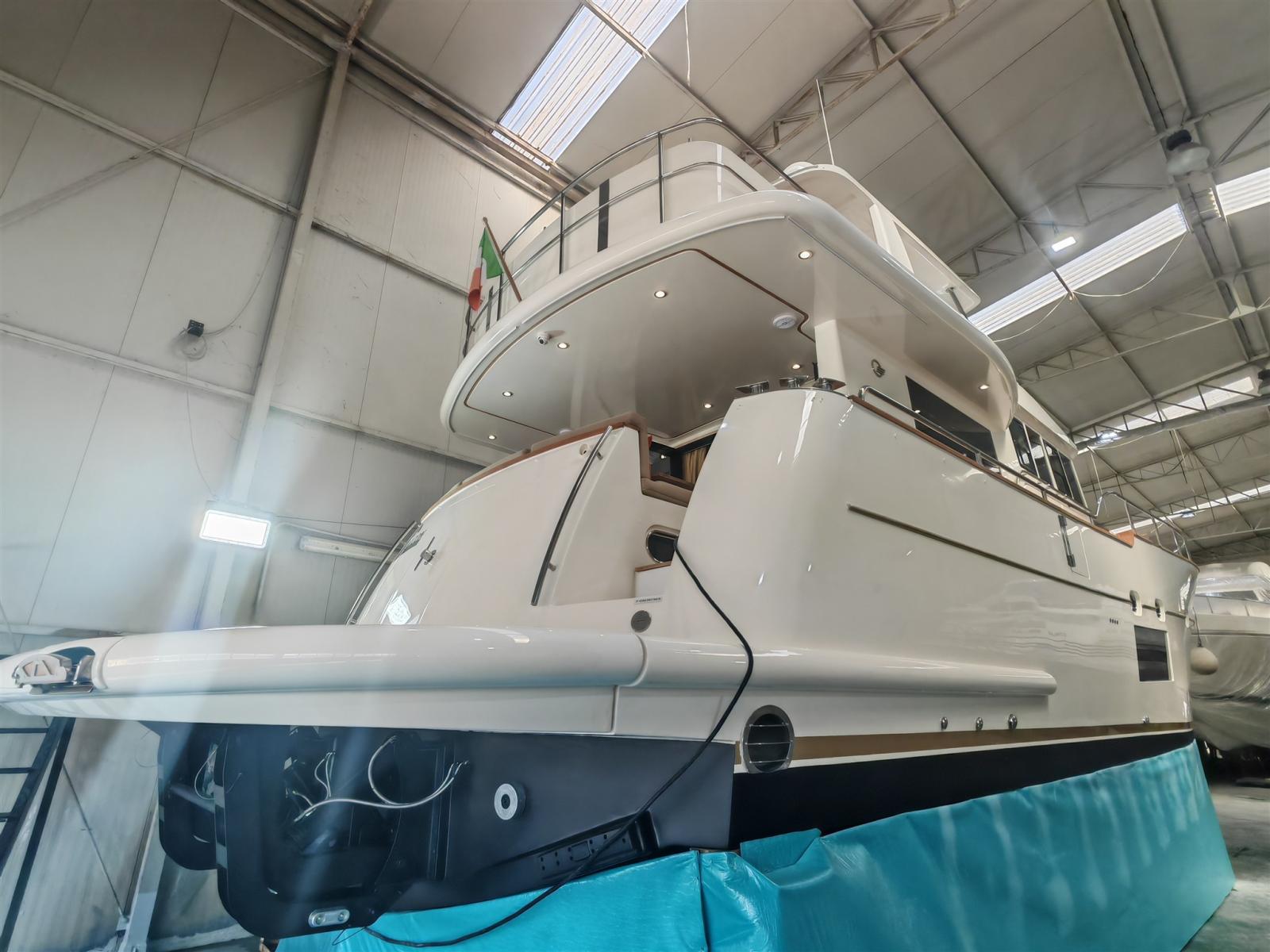 Alarme moteur, Alarme de pompe de cale, Eau sous pression, 4 Batteries (agosto 2023), Passavant en teck, Douche de cockpit, Double barre à roue, Phare de poursuite, Flaps hydrauliques, Extincteur(s) fixe(s), Indicateurs de flaps, Éclairage de courtoisie, Passerelle, Plateforme arrière (in teak abbatibile), Porte latérale (con apertura totale), Porte latérale, Cockpit en teck, Prise de quai, Onduleur, Guindeau électrique, Echelle de bain, table de cockpit, Corne, T-Top (in vtr sul fly), 2 Winch électrique.